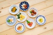 和と洋がマッチしたカラフルな取皿です。パーティーなど人が集う時に便利です。小皿以外は商品ではありません。