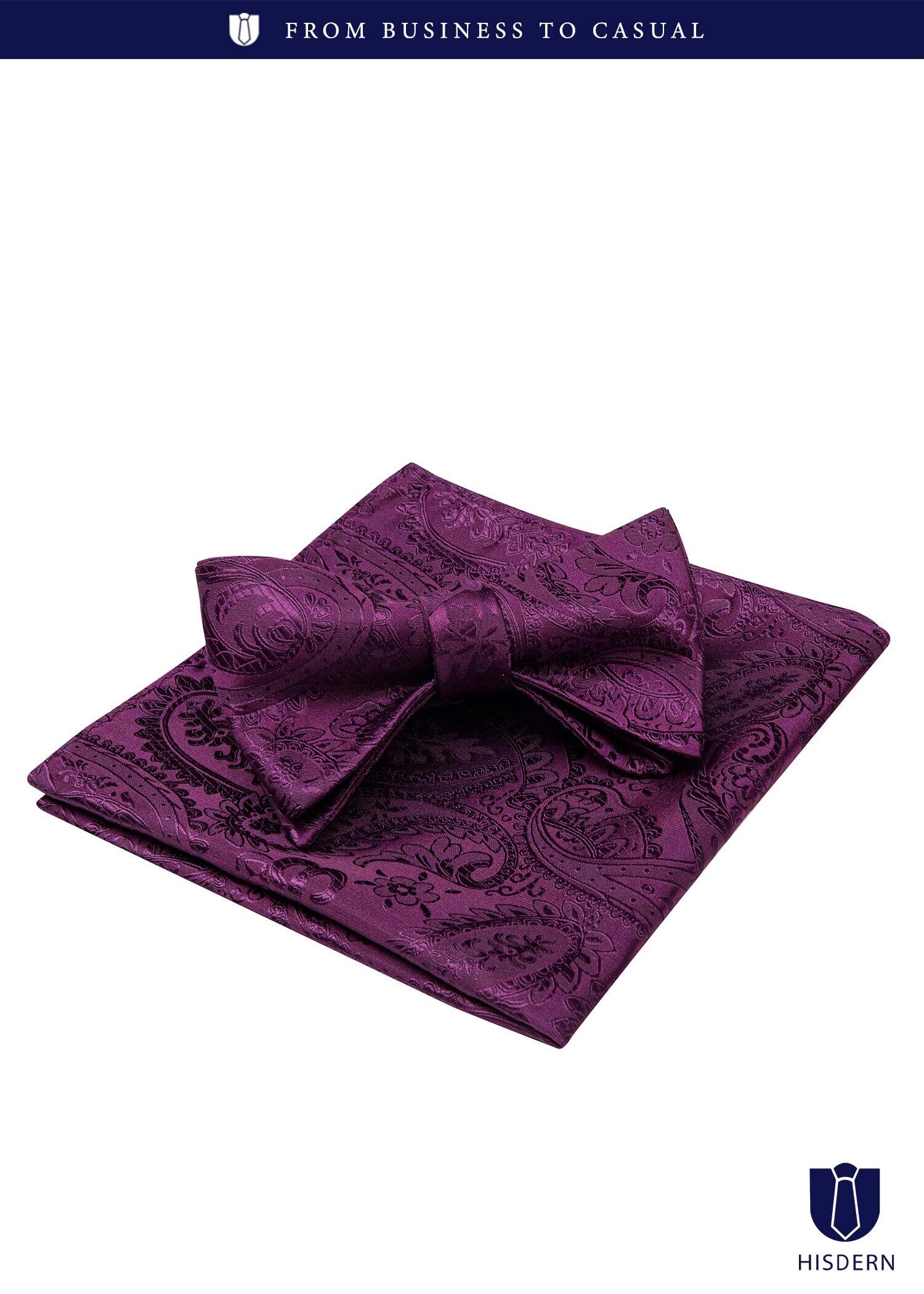 [HISDERN] BC-01 蝶ネクタイ 手結び チーフ付き メンズ ペイズリー ボウタイ セット 結婚式 入学式 披露宴 プレゼント パーティー 色選択