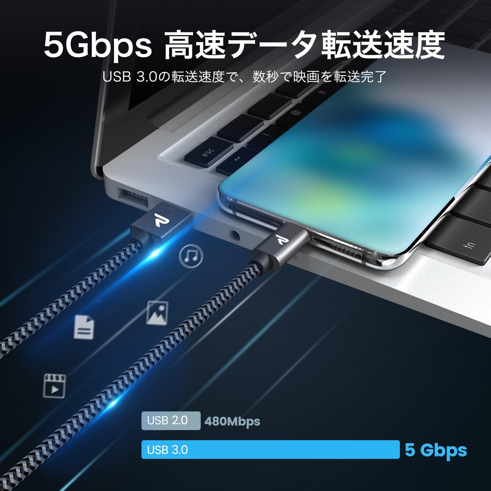 【快適なQC3.0急速充電】当社のUSB CケーブルはQuick Charge 3.0に対応し、3.6V〜20V/3Aの高速充電が可能です。お使いのスマートフォンやタブレットなどのデバイスを短時間でフル充電し、貴重な時間を節約できます。急いでいる時でも便利で利用できます。