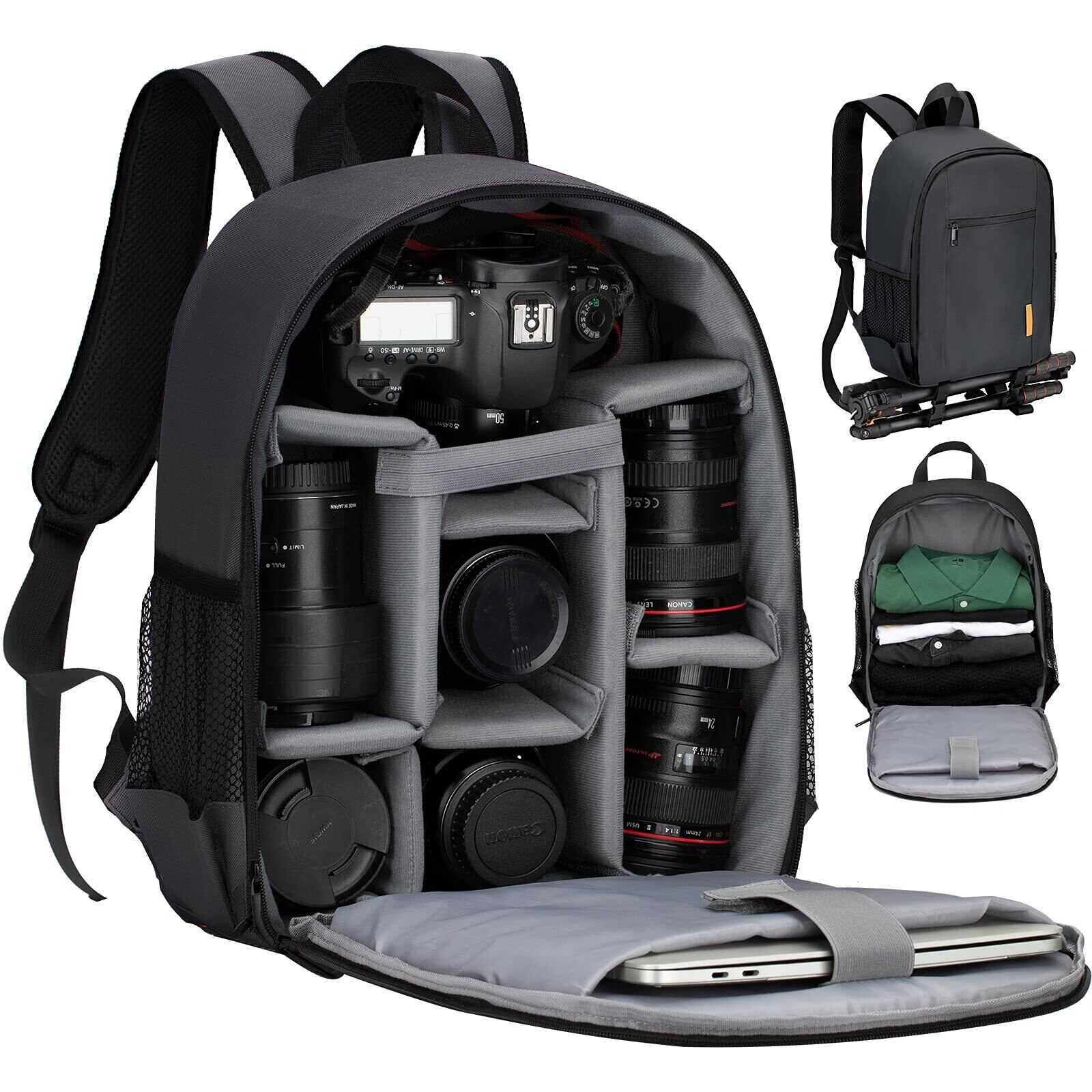 【プロのカメラバックパック】自由組み合わせ可能な綿入り仕切り板付き、カメラ機材などをしっかり守ります。カメラバッグの底にカメラ三脚を取り付けることができます。