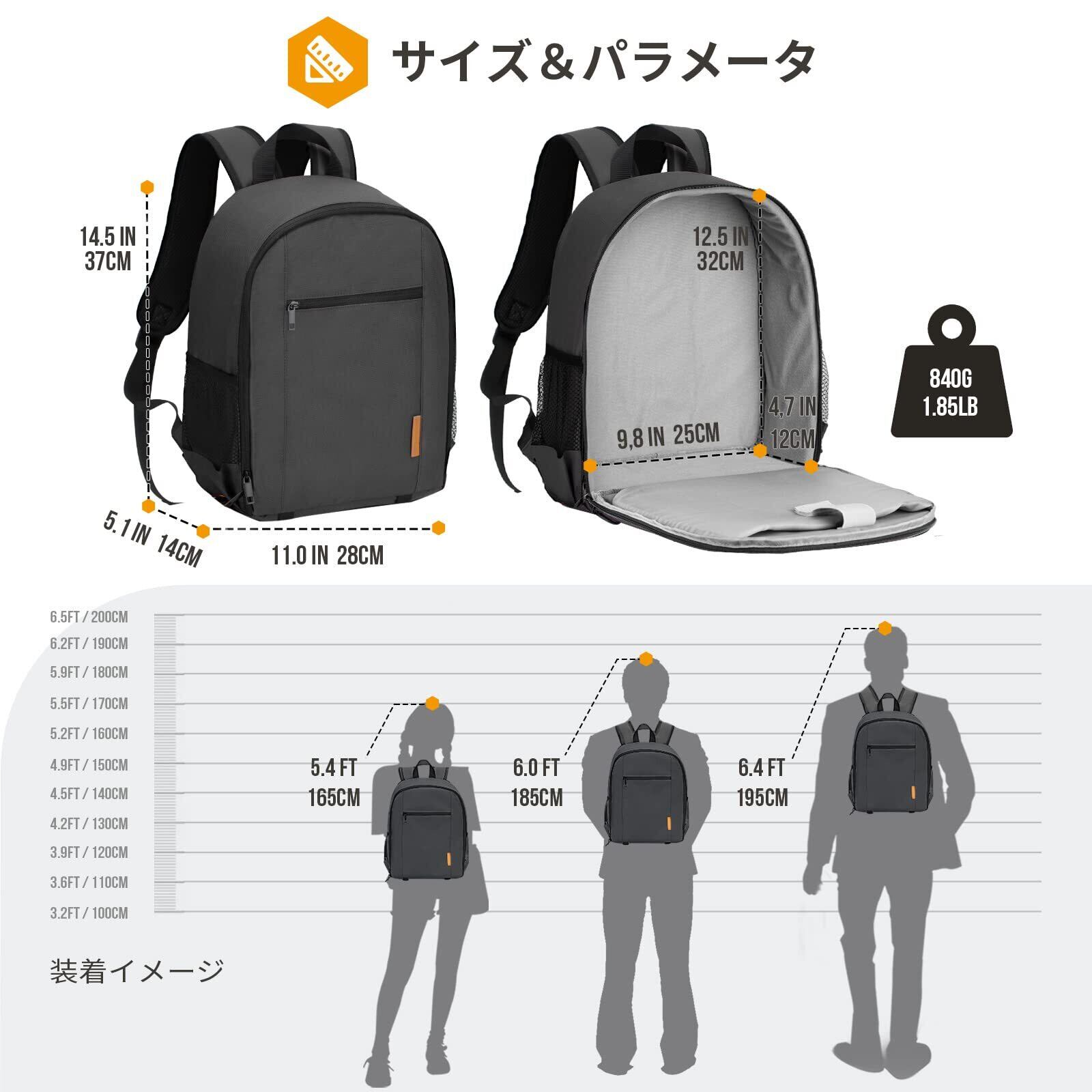 【軽量&コンパクト】外寸は約39cm*29cm*15cmとなります。重量はたった850gとなります。カメラバックパックとして、羽のように軽くて、街撮影にピッタリします。飛行機内に持ち込みするのも可能で、最大限に活用することができます。