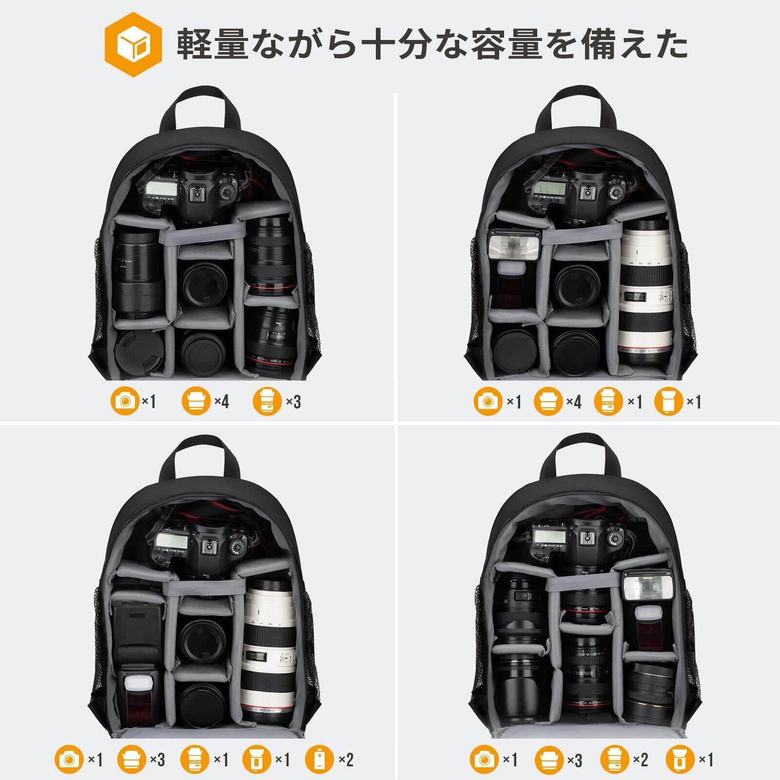 [TARION] カメラバッグ 軽量 コンパクト 十分な容量 三脚収納 カメラバックパック レインカバー付き カメラリュック カメラ バッグ リュック カメラケース 一眼レフカメラ ドローン用 撮影用バッグ 日常用バッグ ブラック TBS