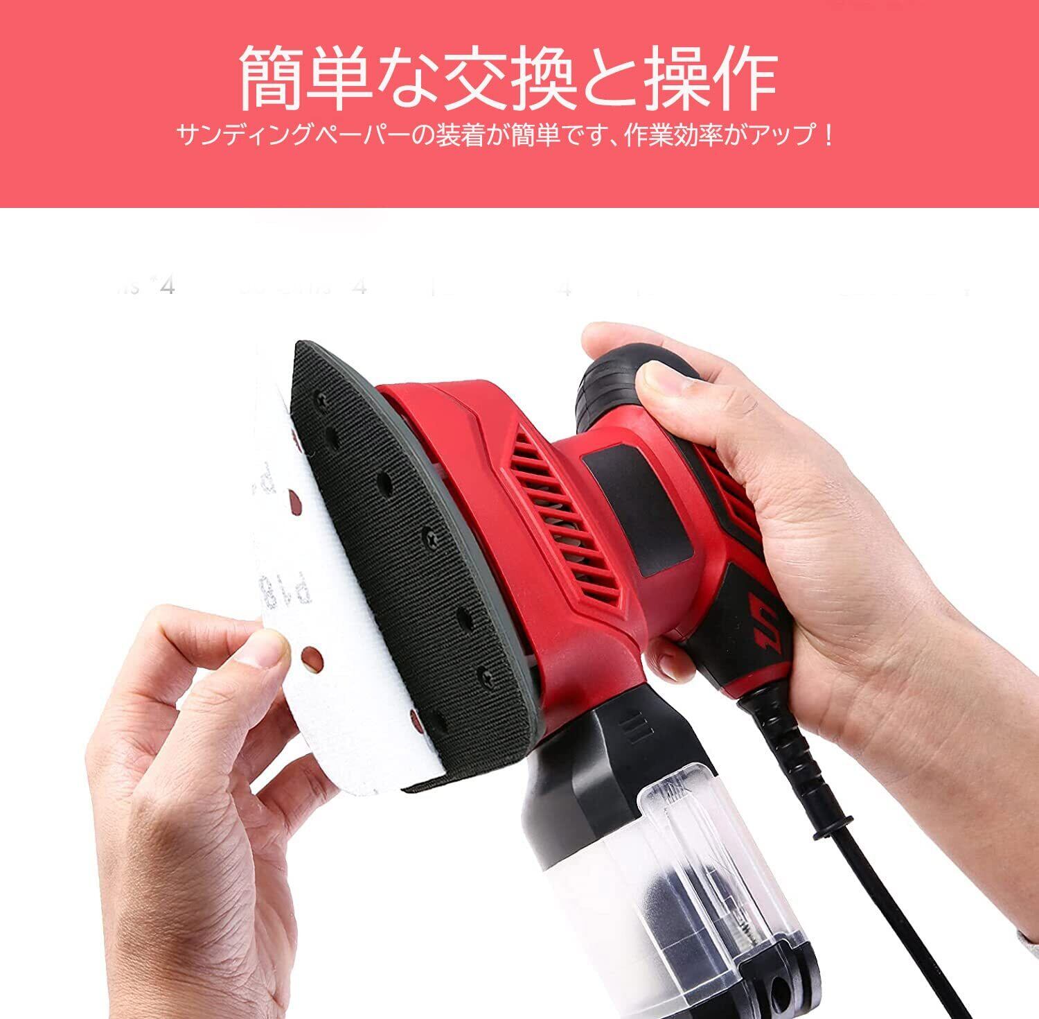 【クイックリリース設計】付属のベルクロサンドペーパー20枚でクイック交換機能を実現本体の重さはわずか950g、片手で簡単に操作できます。