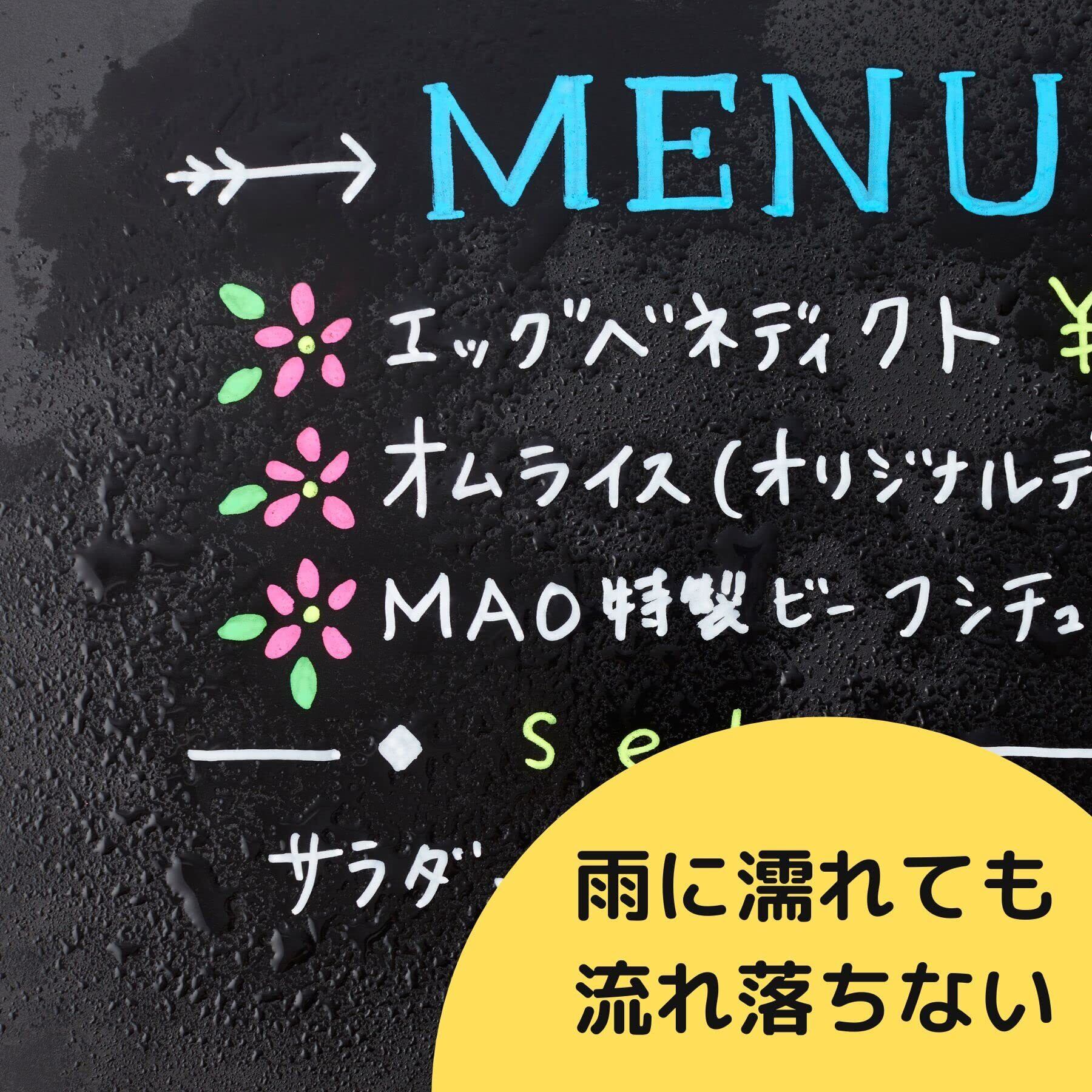 ブラックボード、ガラス、アクリルなどに書ける水性ボードマーカー。インクを最後まで使える直液式。