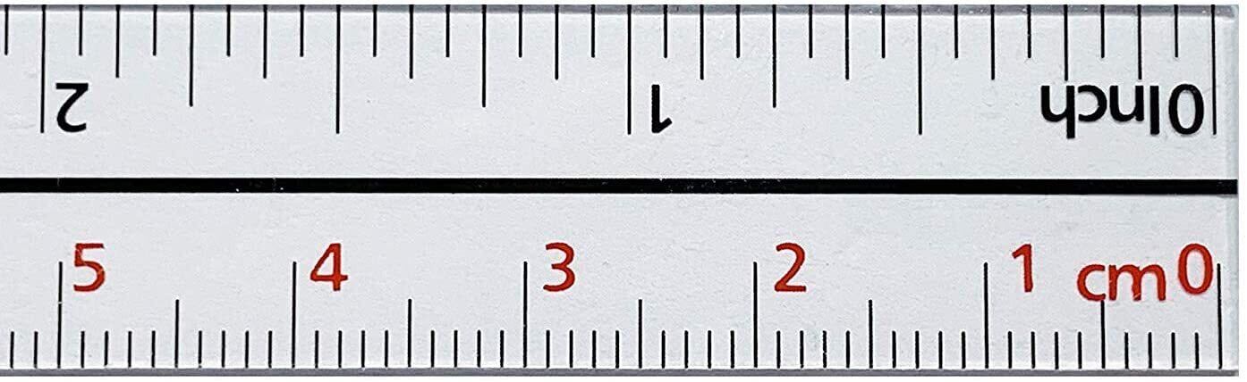 定規部分はセンチ目(0-12cm)とインチ目(0-4.5inch)を併記しています。