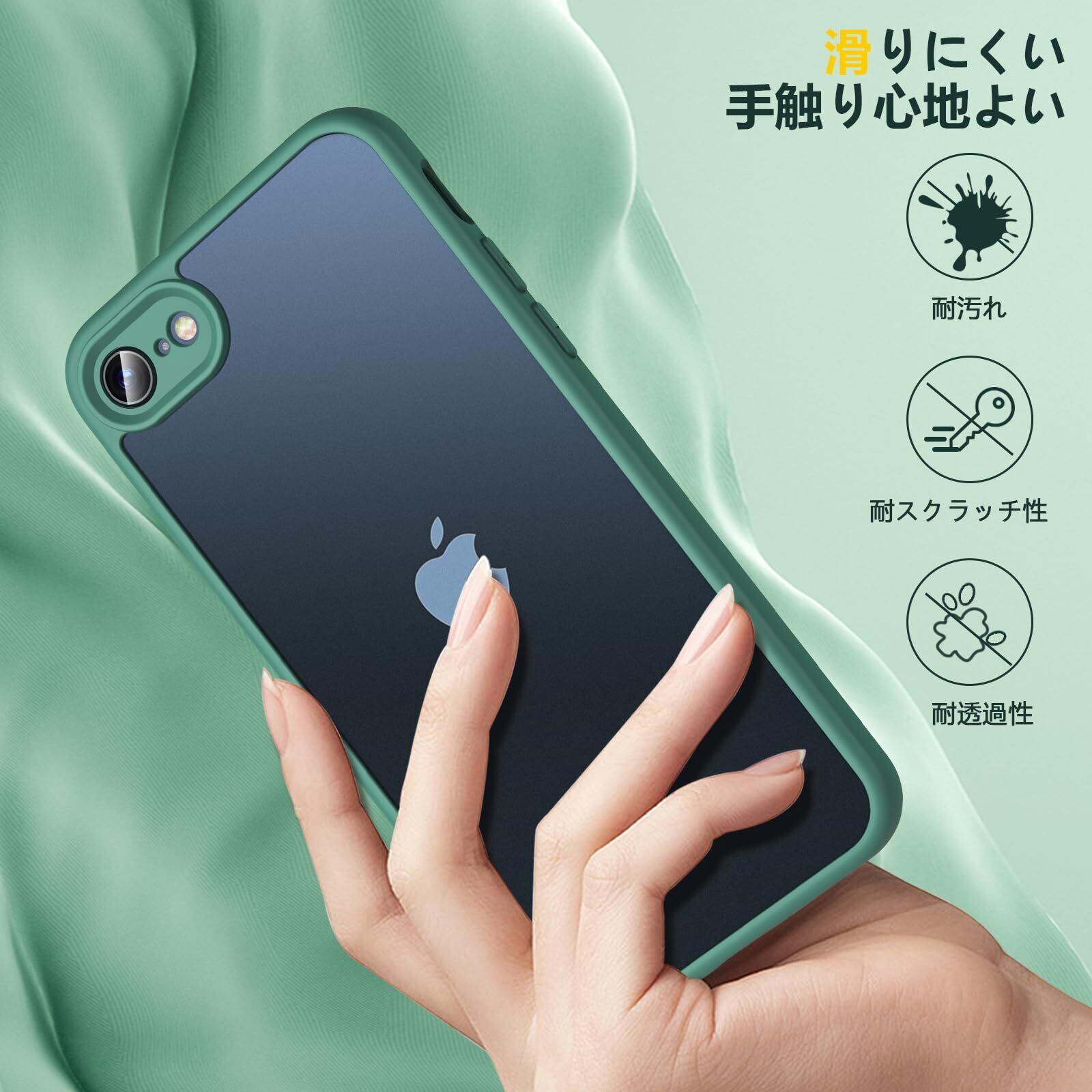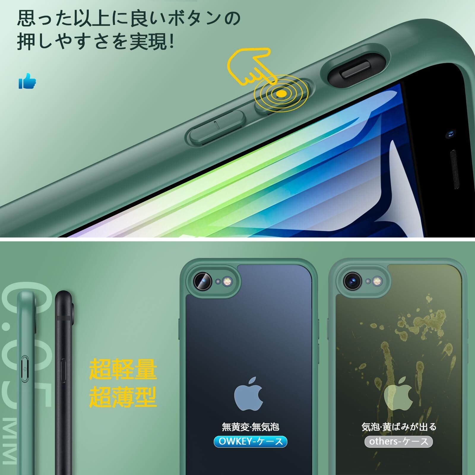 OWKEY iPhone SE ケース iPhone SE3 SE2 iPhone8 iPhone7 ケース【ガラスフィルム付き】半透明 薄型 軽量 アイフォンse スマホケース 米軍MIL規格 全面保護 耐衝撃 レンズ保護 iPhone SE 第3世代 第2世代 ケース ストラップホール 黄ばみなし 耐久性 iPhone SE2/SE3/8/7 用ケース 4.7イン グリーン