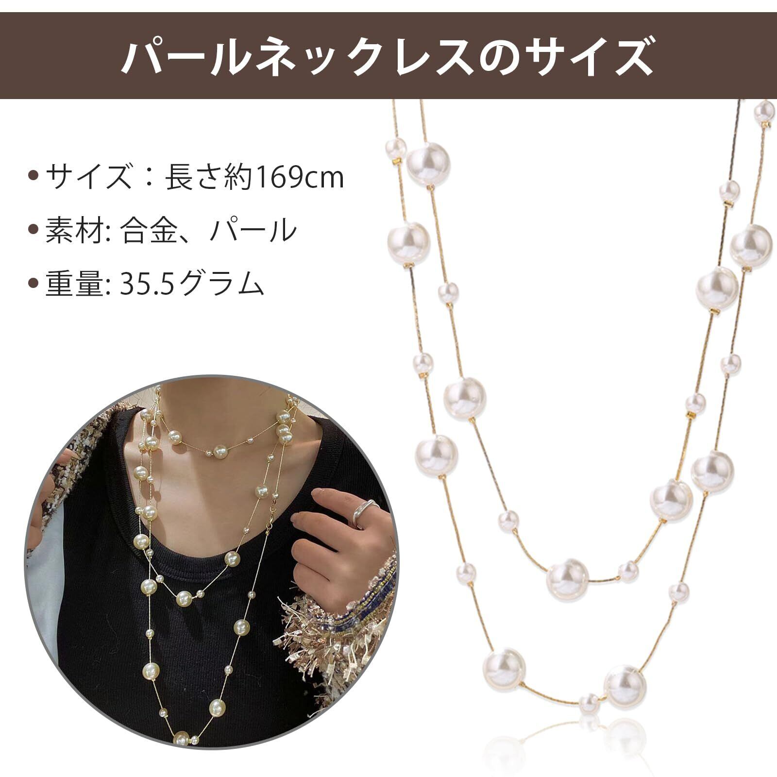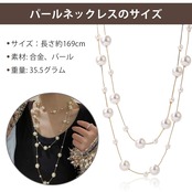 【商品のサイズ】パールネックレスの長さ約:169 cm、重量約:35.5 g。