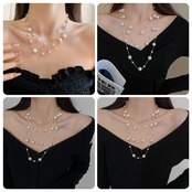 【上品でゴージャスなパールネックレス】光沢を醸し出し、首や肩の美しさを引き立て、独特のシルエットが上品で大人の落ち着いたおしゃれな雰囲気を見せます。