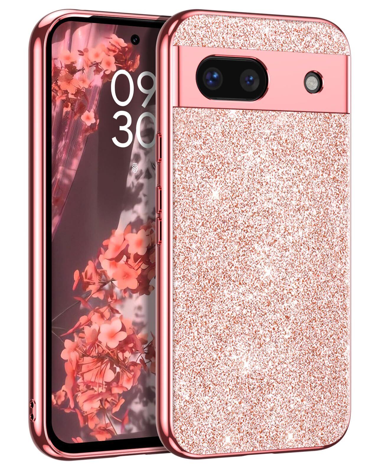 GUAGUA Google Pixel 8a ケース キラキラ ピクセル 8a ソフト TPU カバー 輝きピカピカ グリッター ケース 耐衝撃 スマホケース 8a ケース ワイアレス充電対応 薄型 軽量 ストラップホール付き グーグルピクセル8a カバー(ローズゴールド バラ金)