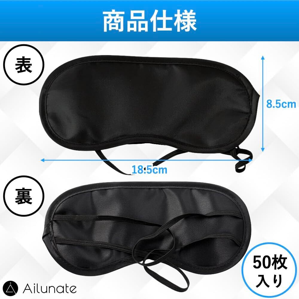 Ailunate アイマスク 使い捨て 個包装 50枚入り 睡眠用 安眠 遮光 衛生的 旅行 出張 軽量 業務用 大容量 男女兼用 無地 黒 ブラック