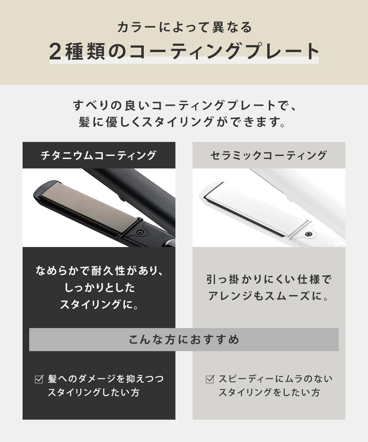 【髪にやさしくスタイリング】マイナスイオン搭載、すべりの良い2種類のコーティングプレート