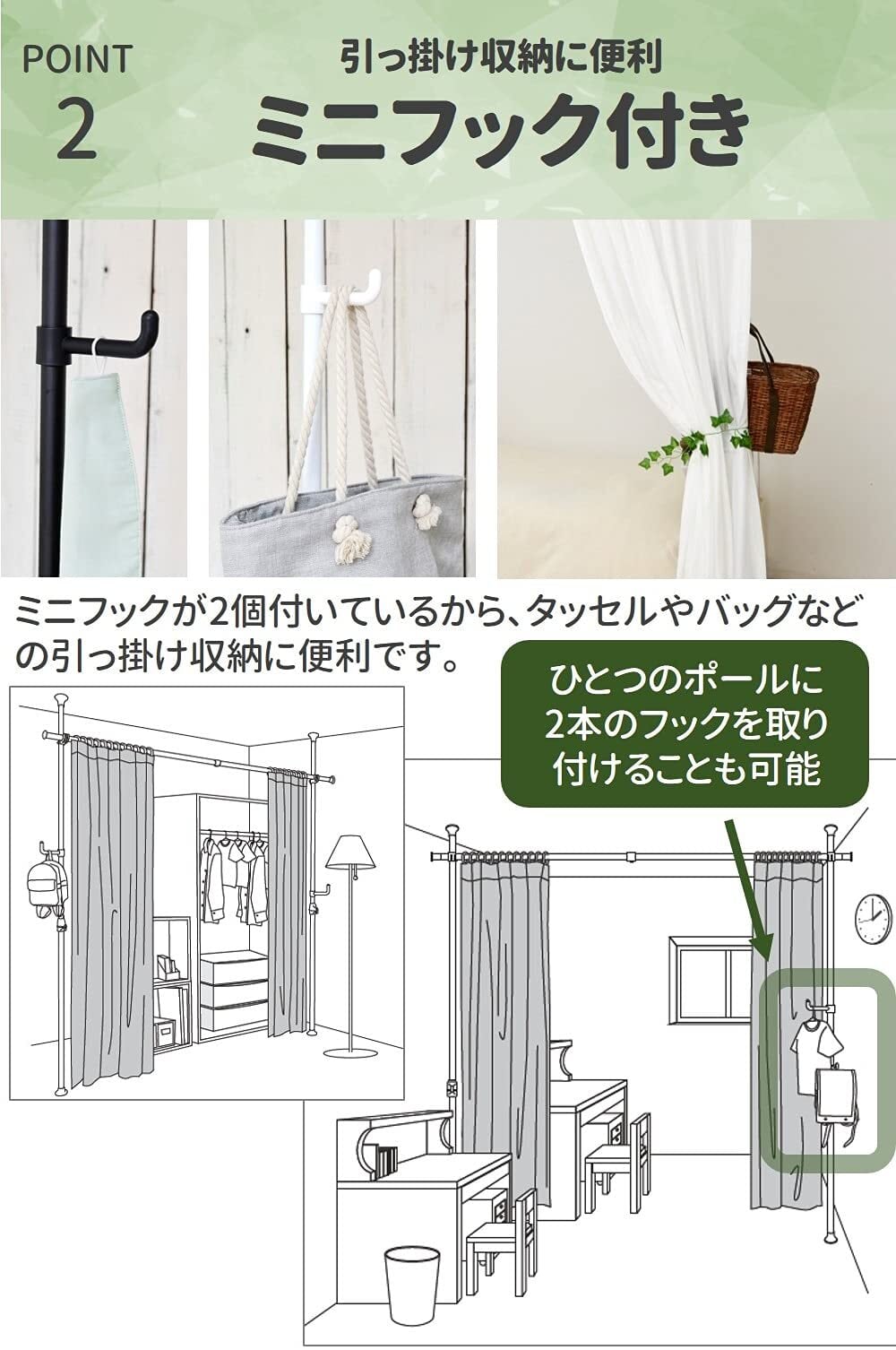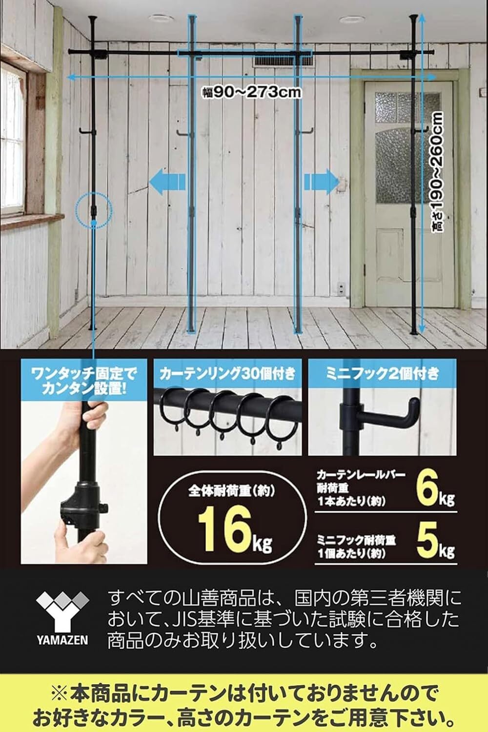 山善(YAMAZEN) カーテンレール つっぱり式 (間仕切り) かんたん突っ張り カーテンリング/フック付 幅90-273×奥行10×高さ190-260cm パーテーション 組立品 マットホワイト WJC-723RM(MWH) テレワーク
