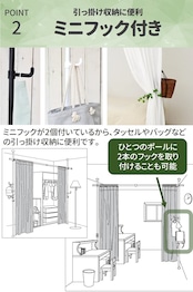 ●ミニフック2個付きなので、タッセルを掛けておいたり、バッグなどの引っ掛け収納もできる(耐荷重5kg/個)