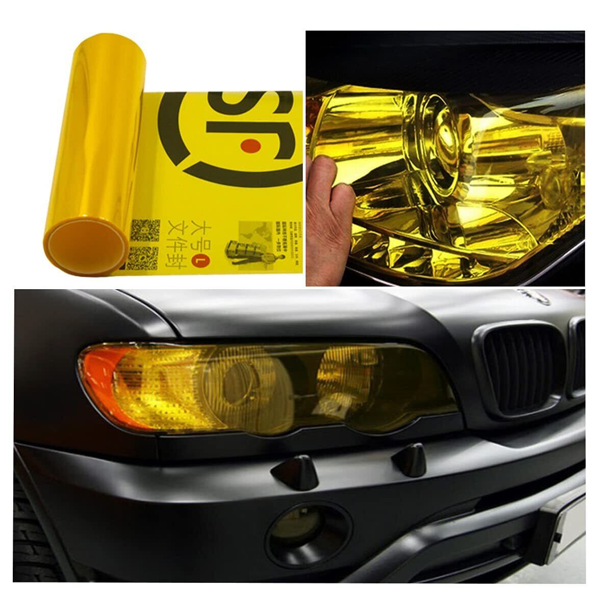 サムコス ヘッドライトフィルム アイラインフィルム 車 シールタイプ 30x120cm ヘッドライト テールに保護フィルム 紫外線対策 シールタイプ 取り付け簡単 (イエロー)