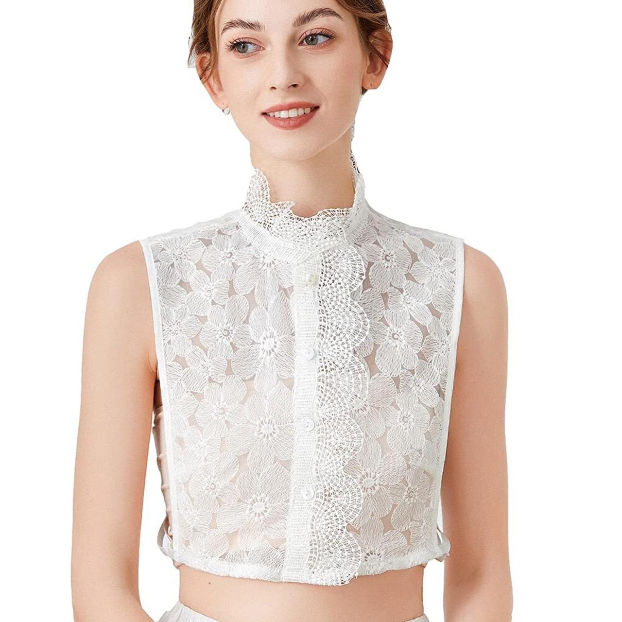 [Suerba] レースつけ襟 ハイネック 付け襟 重ね着風 花柄 立ち襟 レイヤード ブラウス