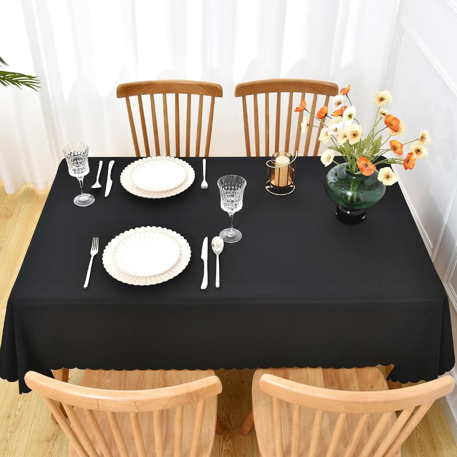 Forhomelife テーブルクロス ブラック 無地 シンプル テーブルカバー 長方形 135×180cm 洗える ウォッシャブル 洗濯可 速乾 黒 厚手 耐熱