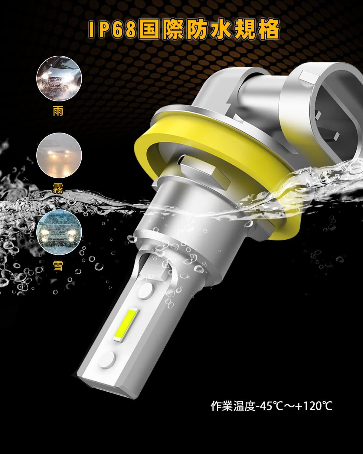 【IP65防水と取付簡単】本当の一体型&配線なし!差し込むだけで完成!取り付け超簡単!スペースが狭い車でも取付でき!国際標準IP65防水レベルで、雨や雪の日も心配なし。H8 / H9 / H11 / H16(国産車)の純正球と交換して、直接交換できます。対応場所:フォグランプ。