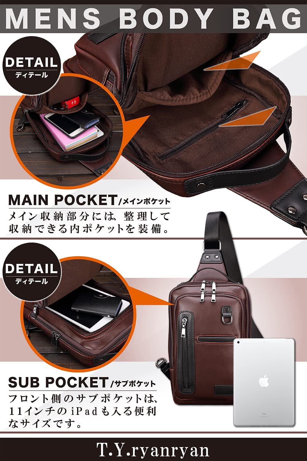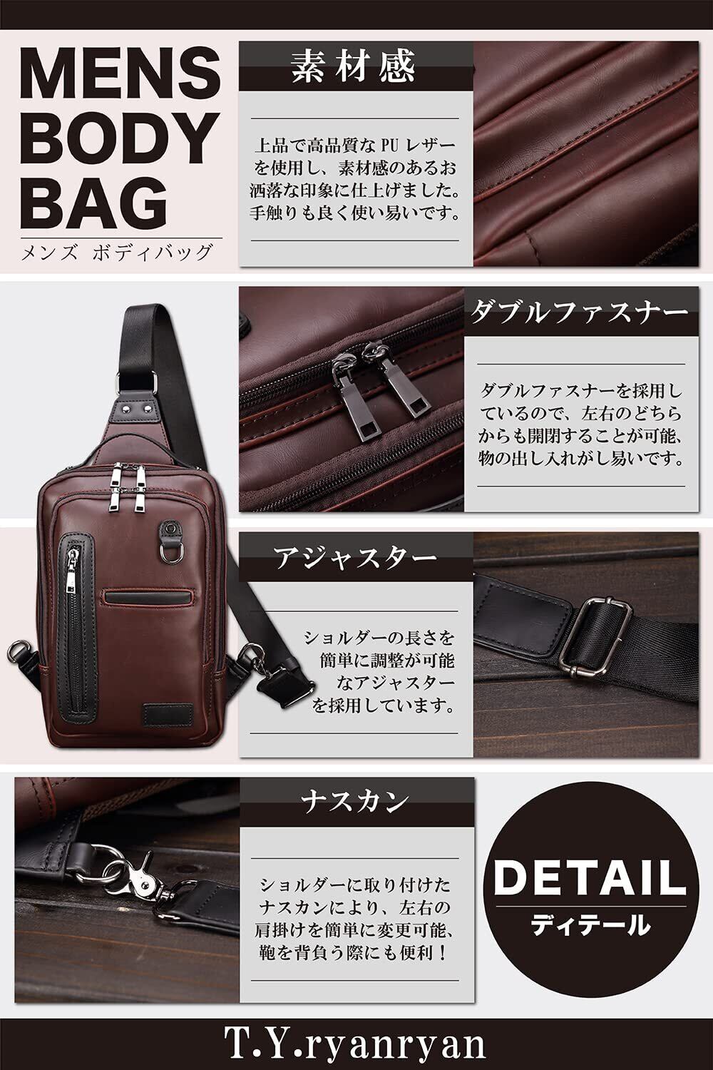 [T.Y.ryanryan] ボディバッグ メンズ 斜めがけ ショルダーバッグ ワンショルダー PUレザー