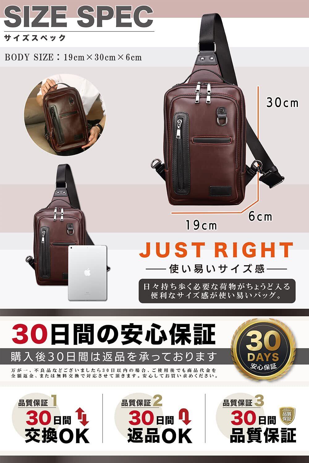 【デザイン性と実用性を兼ね備えたボディバッグ】渋めのブラウンと高品質PUの組み合わせで大人の高級感を醸し出しています。2層になったメインポケットに加え、スリットポケットなど機能面に拘ったつくりのボディバッグです。サイズ:幅19cm×厚さ6cm×高さ30cm