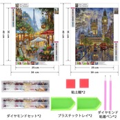 セット内容:ダイヤモンド絵画セット2セット(フレームを含まない)、ダイヤモンドセット+ダイヤモンド粘筆+プラスチックトレイ+油絵布+粘土糊各2点を含む。油絵布サイズ:約30×40 cm、操作サイズ:約25 cm*35 cm。
