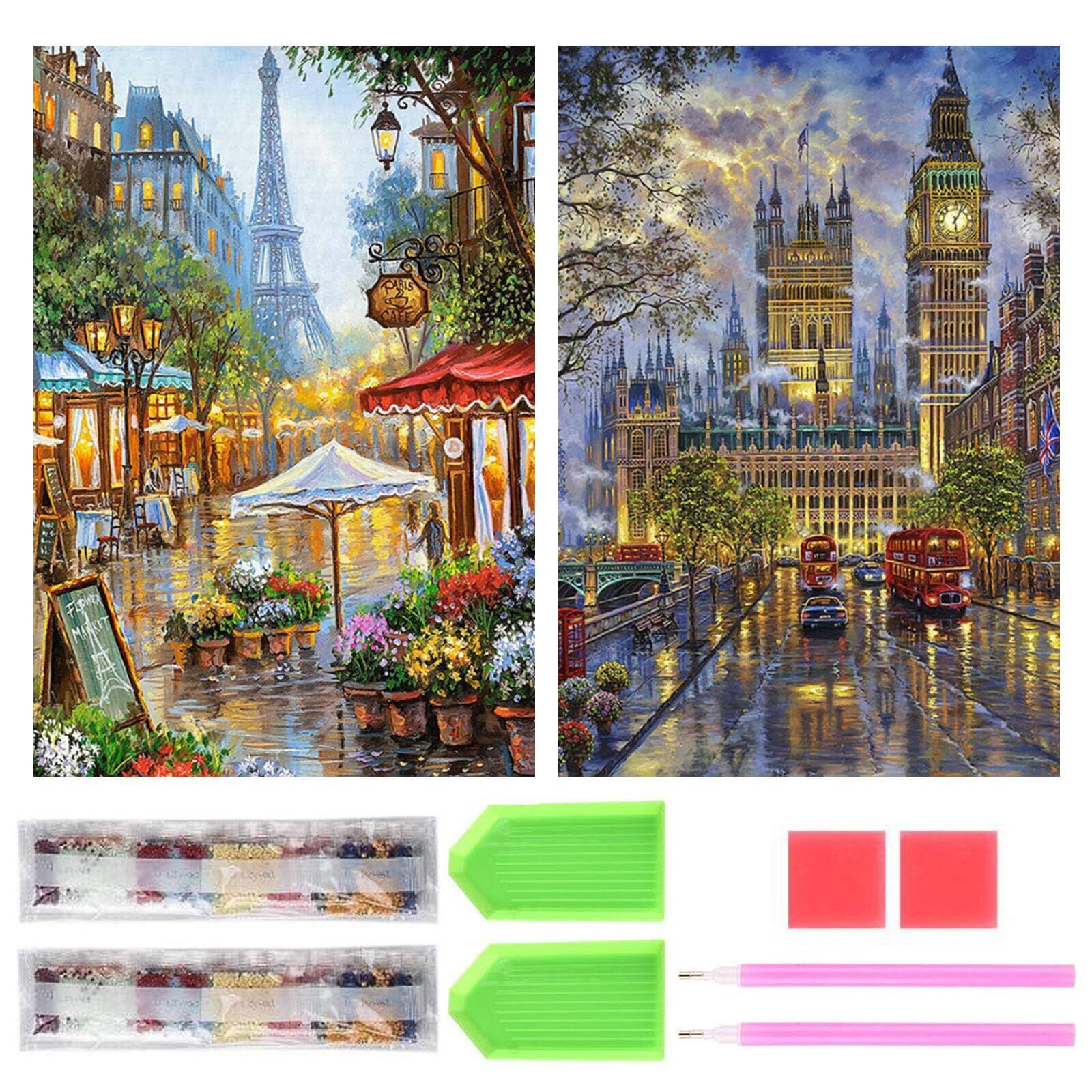 サムコス ダイヤモンドアート キット ダイヤモンドの絵画 2個セット きれい 全面貼り付け ダイヤモンドアート 5D 初心者 大人の子供 DIY 手芸キット 家の壁の装飾 (ストリートビュー)