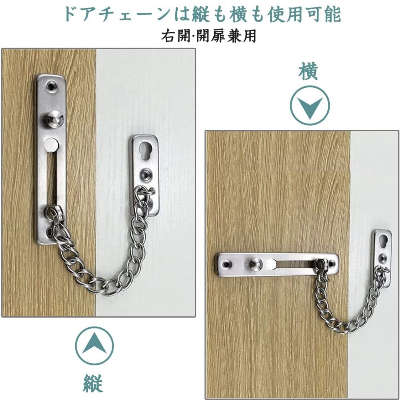 【使い勝手】ステンレスドアチェーンは縦でも横でも使用することができ、あらゆるタイプのドアに適しており、家やホテルなどの場所のセキュリティを強化できます。