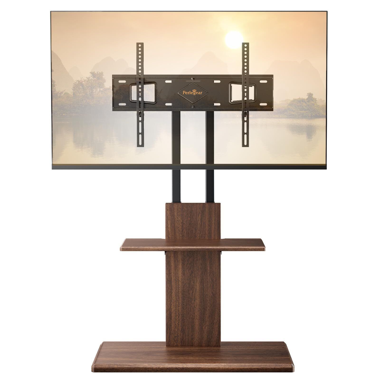 Perlegear テレビスタンド 壁寄せ ハイタイプ tvスタンド tv stand テレビ台 壁掛け 32~70インチ対応 VESA/横100-600mm/縦100-400mm 耐荷重45kg 12段目高さ調節 左右20度首振り 木目調ブラウン PGFS10