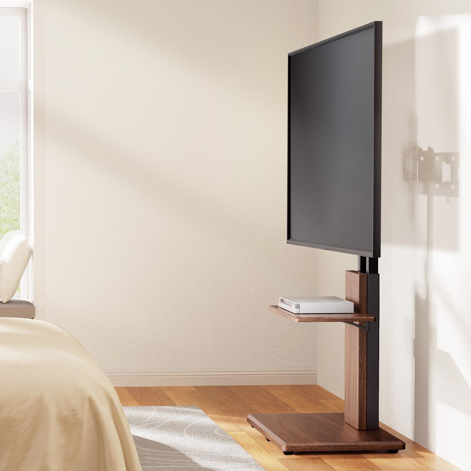 【12段目高さ調節・左右20度首振り】Perlegear 壁掛けtvスタンドは、TVブラケットの取付高さが3段階で、支柱の取付高さが4段階で、合計12段階の高さ調整が可能です。取り付け部中心から台座までの高さを93cmから108cmまで調整できます。テレビの端を軽く振るだけで、左右に20度首を振ることができ、角度を簡単に変えられて便利です。高さ調節・左右首振りが可能で、視野角が広くなり、部屋のさまざまな場所からテレビを観られ、快適に視聴できます。また、木製棚の取付高さが4段階で、台座までの高さを33cmから45cmまで調整できます。