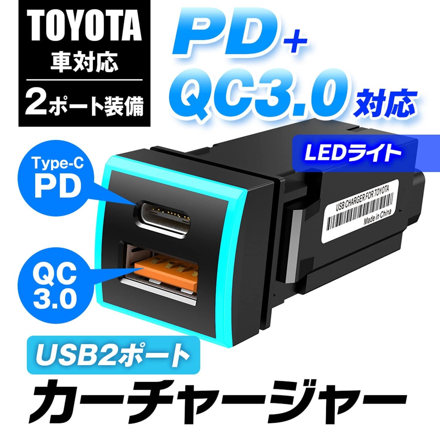 ◆トヨタ車対応のUSB QC3.0 + Type-C PD 2ポートカーチャジャー