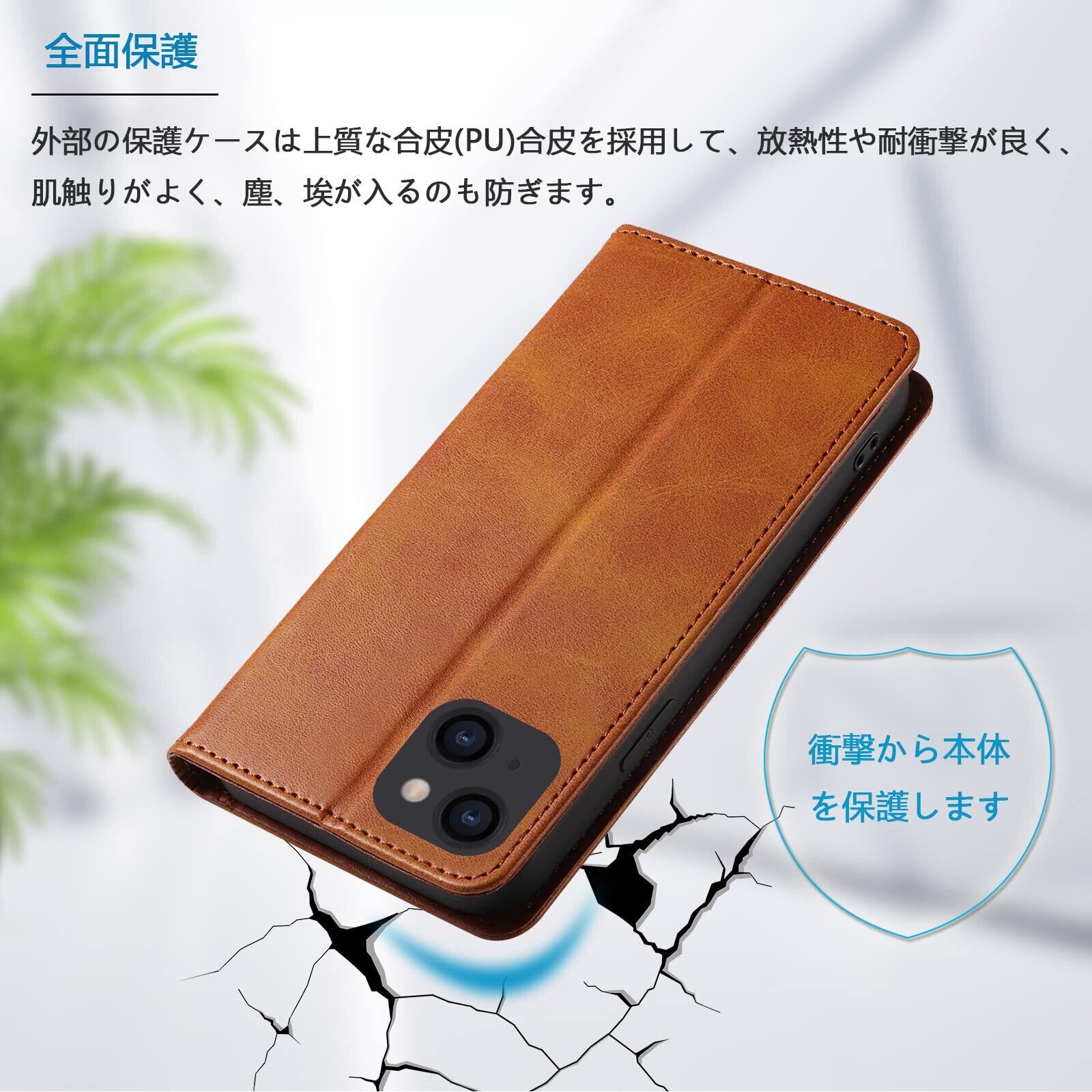 iPhone14 ケース iPhone 14 ケース イフォン14 ケース スマホケース 手帳型 携帯カバー レザー 耐衝撃 軽量 着脱しやすい 放熱性 マグネット式 カード収納 スタンド機能 iphone ケース14 対応 360度保護 PinLiSheng (カーキ色, iPhone14)