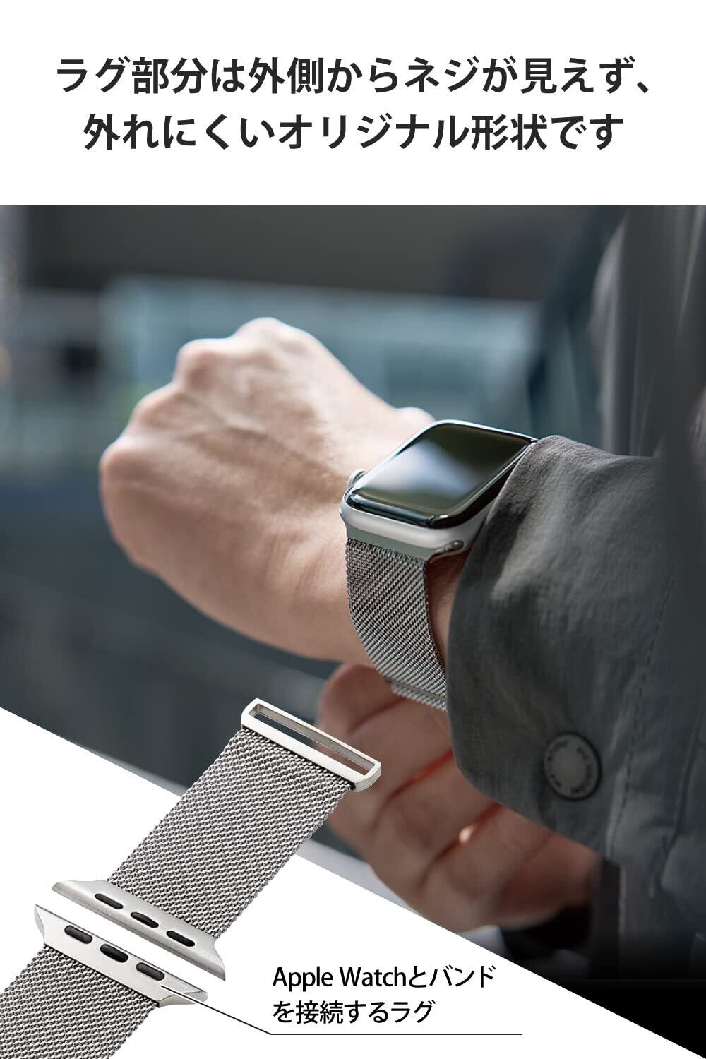 ■バンドをApple Watchに装着したままで液晶画面の確認、本体の操作、各種ボタン操作、純正の磁気充電ケーブルへの設置が可能です。 ※ミラネーゼバンドの着脱時には、Apple Watchとバンドに重みがあるので落下にご注意ください。
