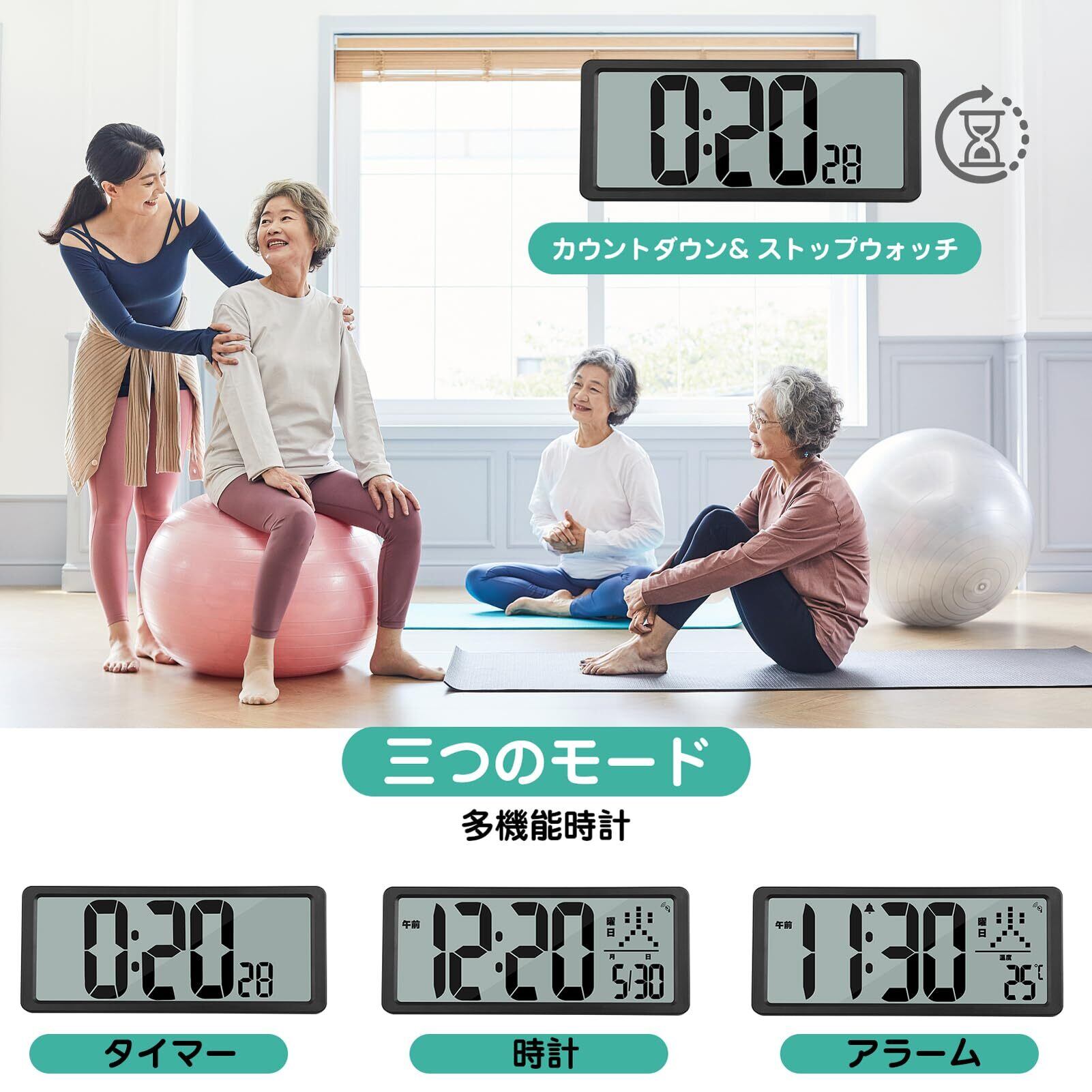 Blueekin デジタル時計 電波 LCD大画面 大型 全視野対応 壁掛け置き兼用 バックライト付き 目覚まし時計 大音量 タイマー機能 卓上 電池式 おしゃれ アラーム スヌーズ機能 カレンダー/温度表示 12H/24H時間表示 (ブラック)