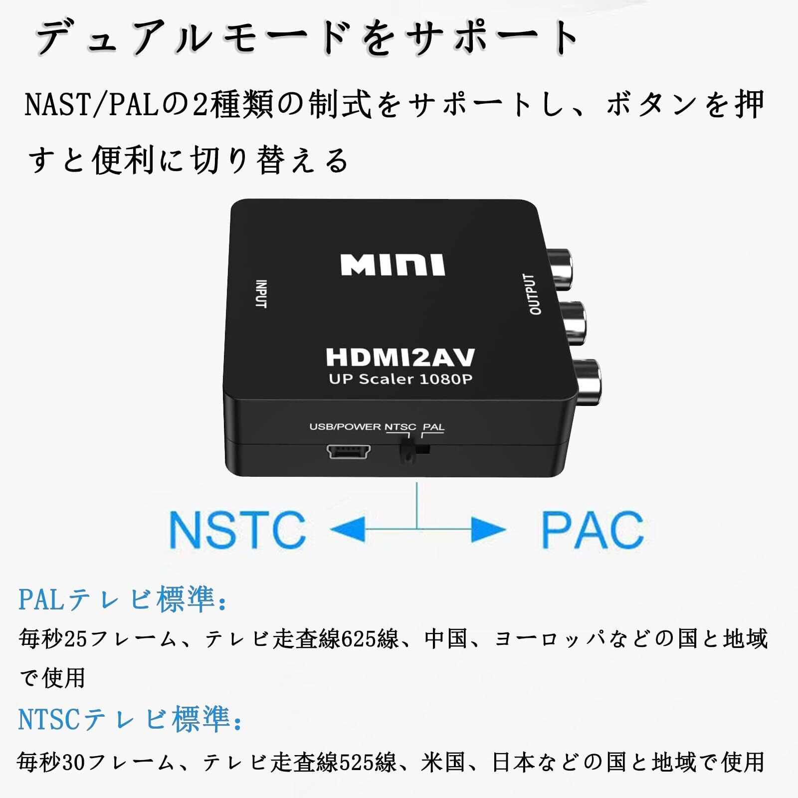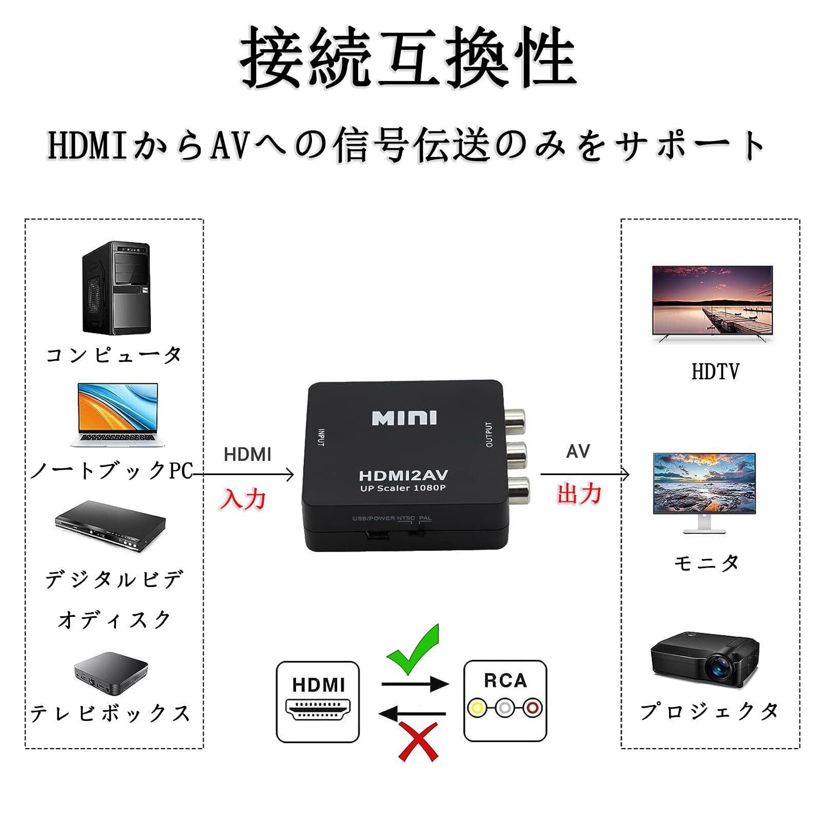 HDMI to RCA 変換コンバーター HDMI to AV変換アダプタ 1080P対応 PAL/NTSC切り替え アナログ変換 音声出力 USB給電ケーブル付きXbox/PC/DVD/PS3/PS4/PS5PC/BDプレーヤー/switchなど対応
