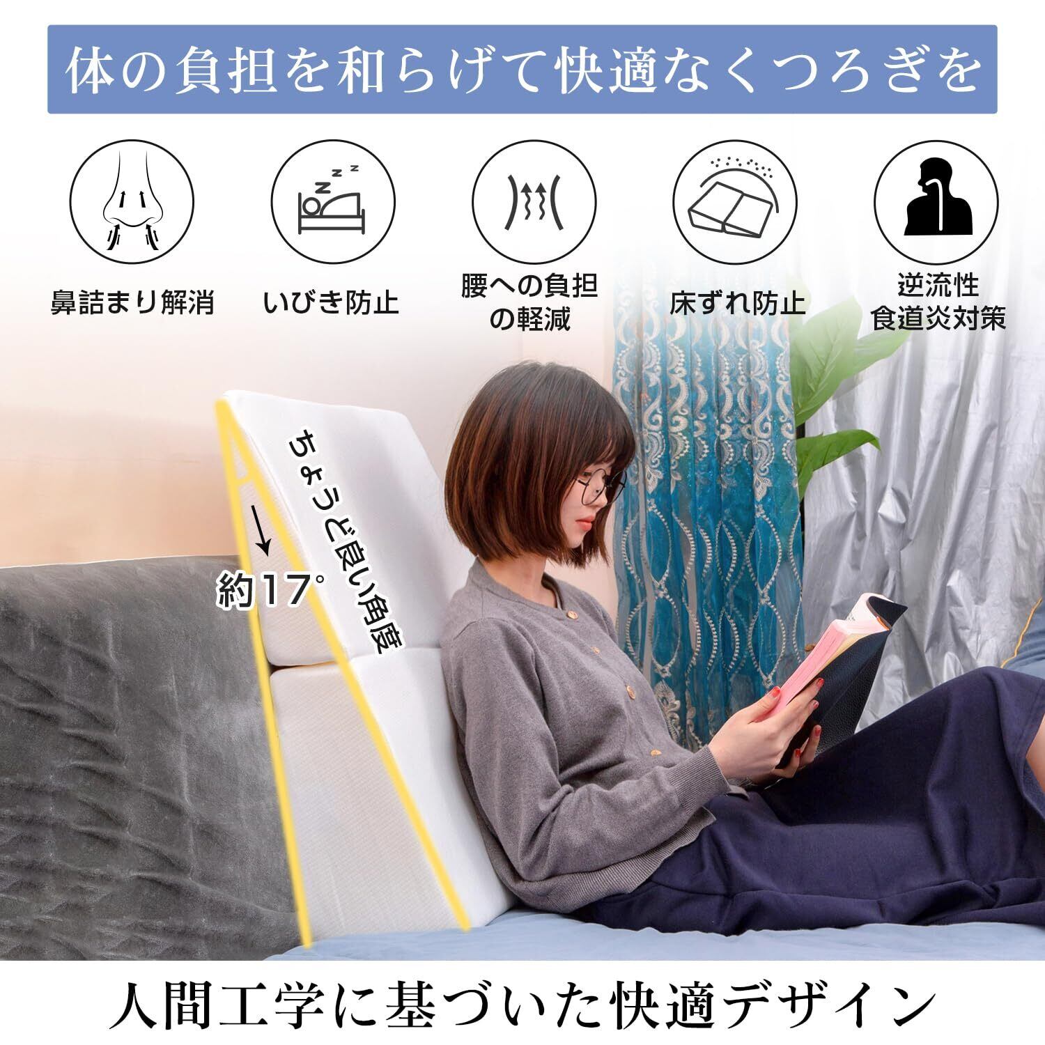 【最適な高さ】胃酸の逆流を防ぐには、就寝時に背中を15cm~20cm上げて寝ると良いと言われています。こちらの三角枕は高すぎず低すぎず最適な17度で、仰向けでもうつ伏せでも最も快適です