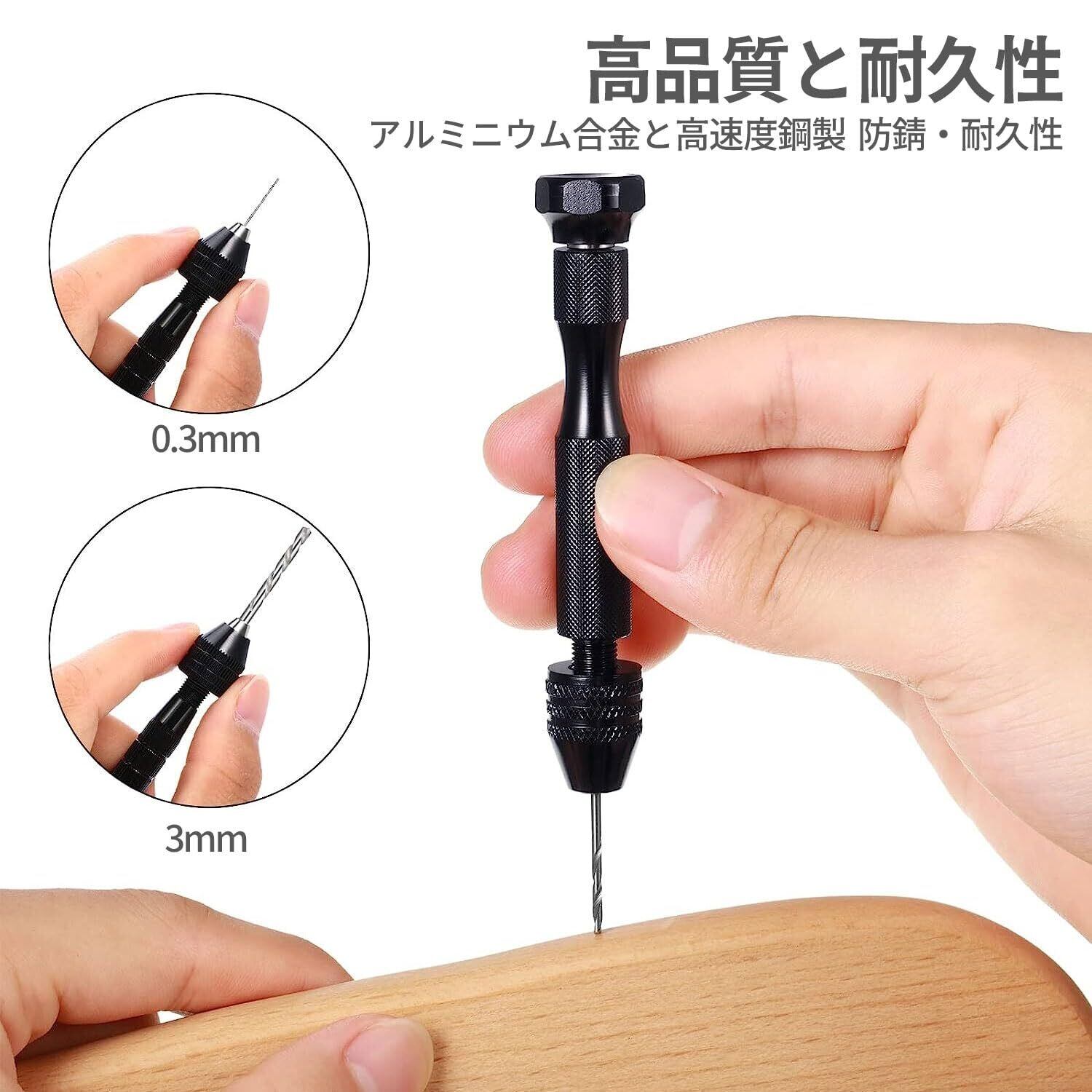 【幅広い用途】ピンバイスは、小さな穴を開ける必要があるDIYプロジェクトに便利です。電子部品の取り付け、宝石やビーズなどの小さな素材を使ったアクセサリー作り、プラモデルやミニチュア作り、革製品の穴あけなどに使えます。木材、プラスチック、軟質金属など、幅広い素材に使用できる。微細な穴や精密な工作物の穴あけが可能である。
