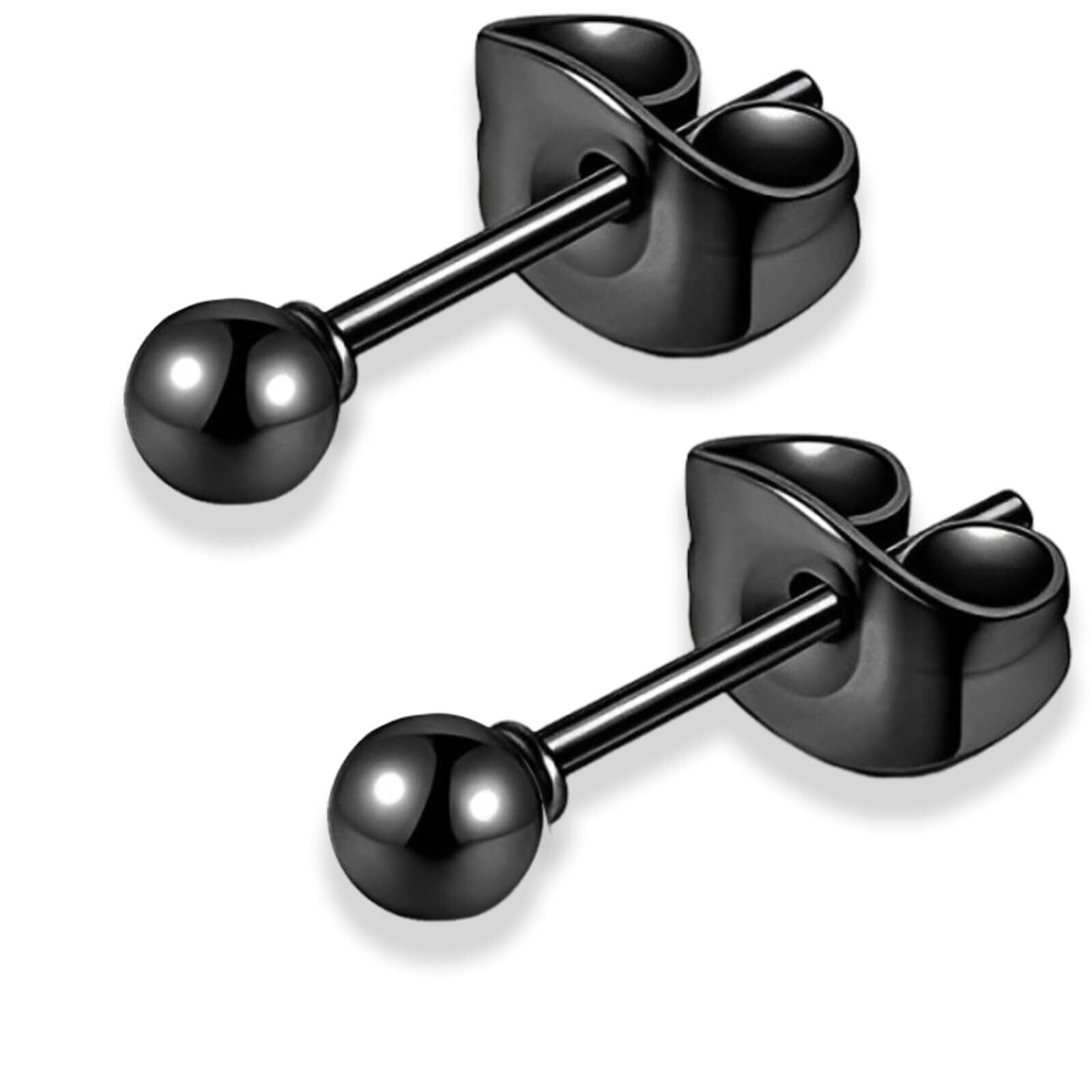 swars ピアス メンズ レディース サージカルステンレス 金属アレルギー対応 丸玉 ボール 両耳用 2個セット (ブラック 3mm)