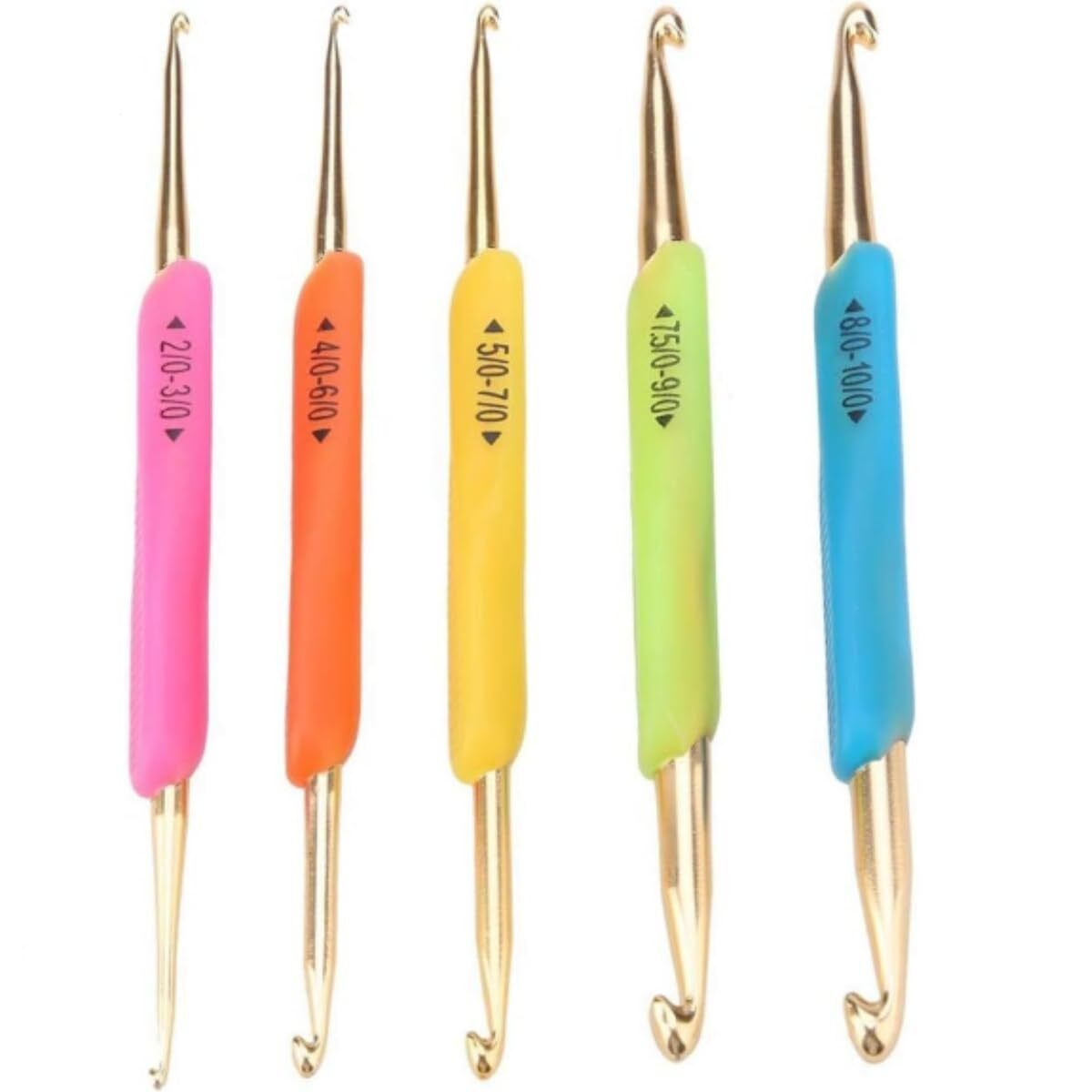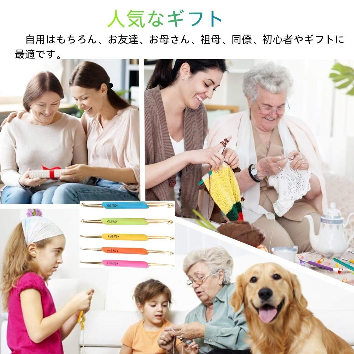 YFFSFDC かぎ針セット 編み針 ダブルフック かぎ針編組毛編みツールかぎ針編みフック ソフトラバー 手芸 便利DIY 実用的 5本セット
