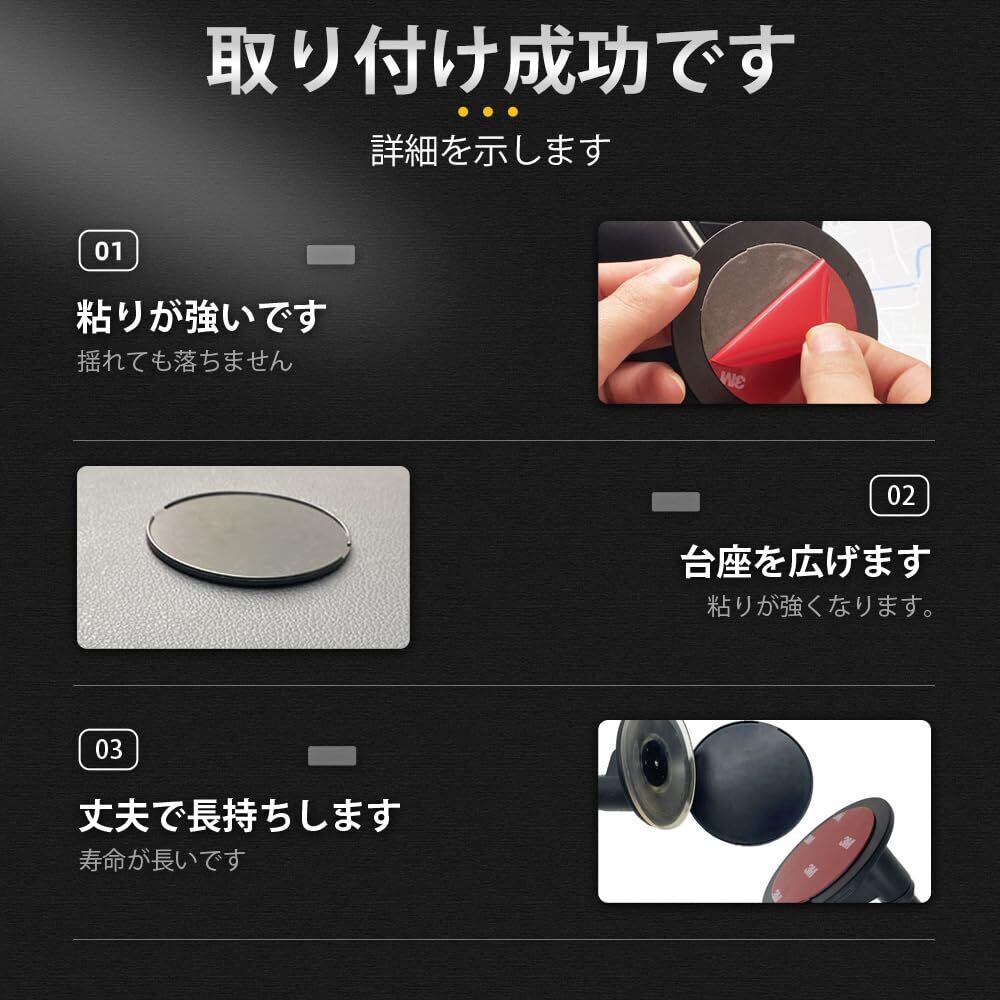 [簡単取り付け】 1.ダッシュボードをきれいにする 2.赤いフィルムをはがす 3.ダッシュボードに固定し、しっかり押す 4.しばらく放置すると使用できるようになります。