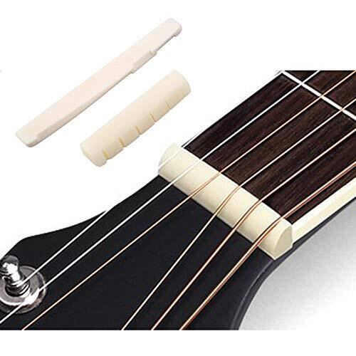 TSUCIA ギター ブリッジ ナット&サドル 置換部品 真牛骨製 アコースティックギター用 良く鳴る (3セット6pcs)