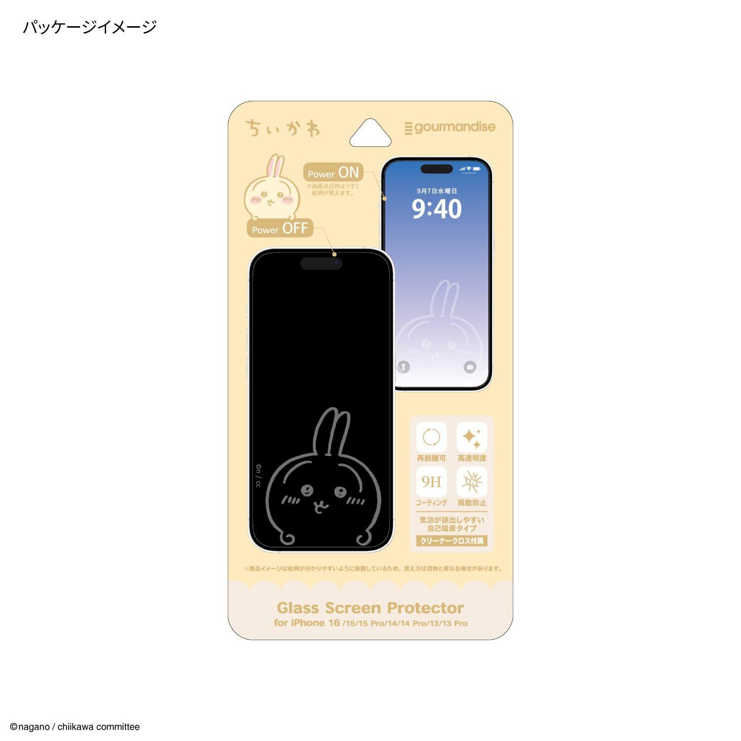 グルマンディーズ ちいかわ iPhone 16 / 15 / 15 Pro / 14 / 14 Pro / 13 / 13 Pro 対応 ガラススクリーンプロテクター うさぎ CK-60C