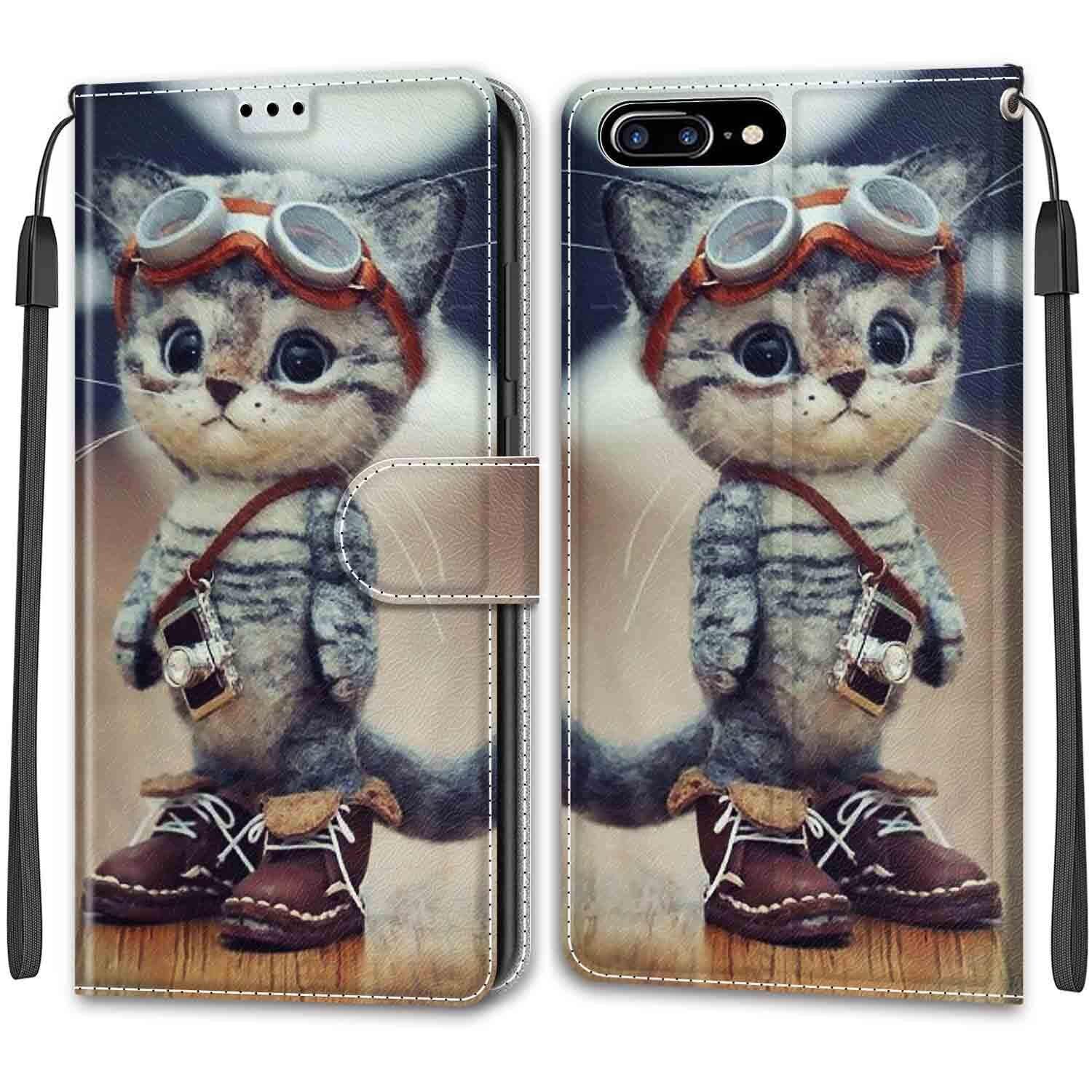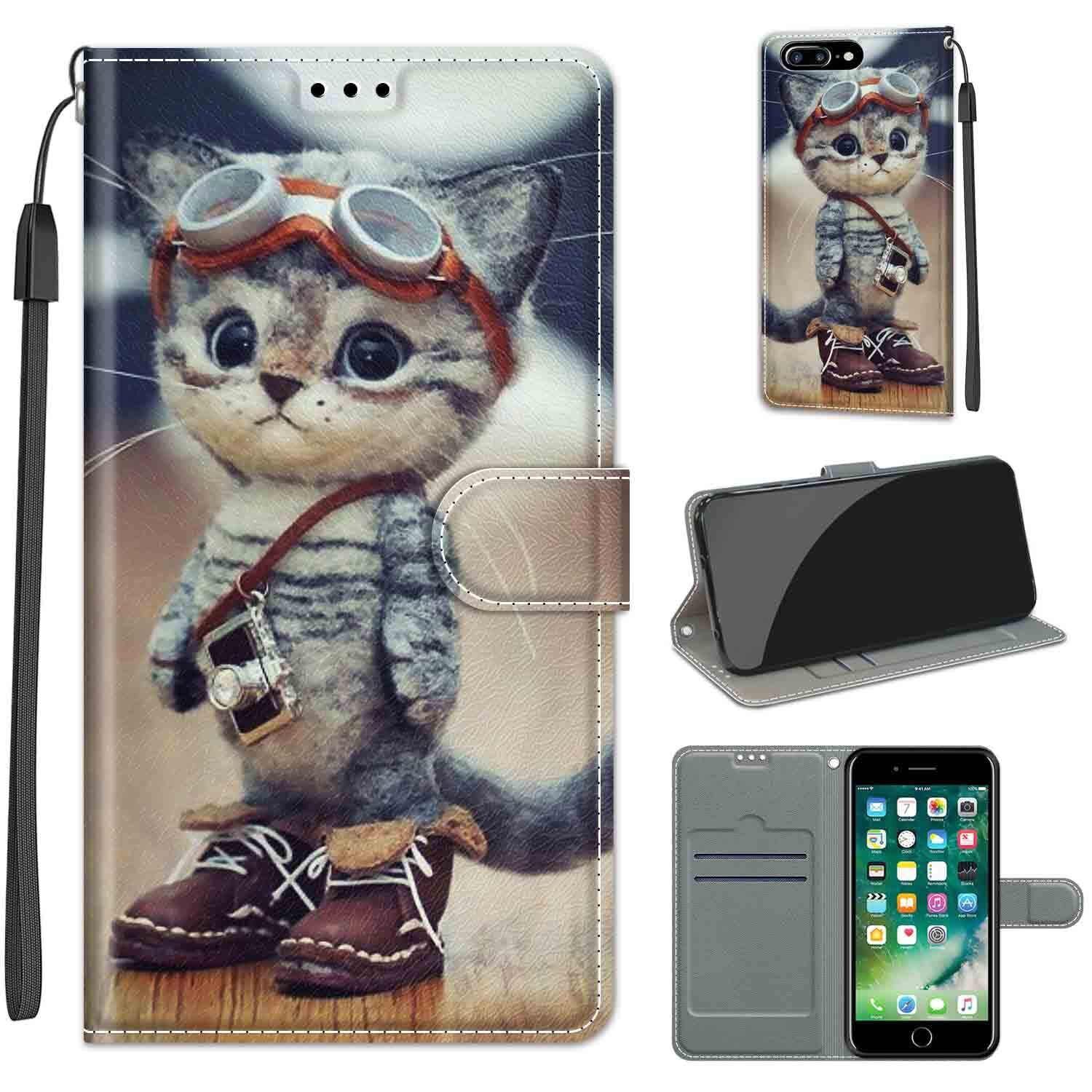 KENHONER iPhone 7 Plus ケース iPhone 8 Plus ケース 手帳型 アイフォン7 Plus ケース アイフォン8 Plus ケース PU 高級レザー マグネット カード収納 全面保護 薄型 耐衝撃 横置き おしゃれ 人気 携帯カバー iPhone 7 Plus/8 Plus対応 (スーツ猫)