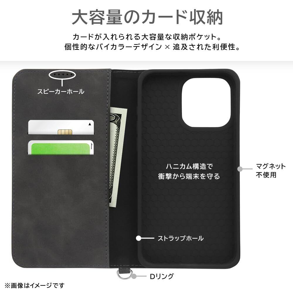 イングレム iPhone 15 Pro Max ケース 耐衝撃 手帳型 レザーケース Noble グレー/ブラック