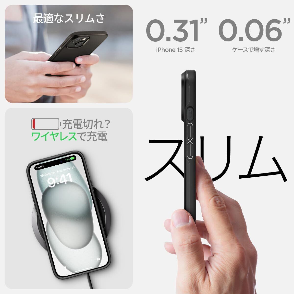 Spigen iPhone 15 ケース 薄型 耐衝撃 軽量 さらさら 米軍MIL規格取得 2重構造 レンズ保護 指紋防止 擦り傷防止 マット仕上げ ワイヤレス充電対応 シン・フィット ACS06776 (ブラック)