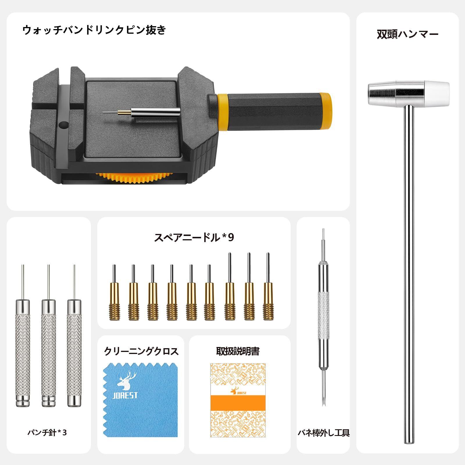 【JOREST】腕時計 ベルト調整 工具セット、時計 ピン 抜き 工具、腕時計 バンド調整、ピン 外し 工具、取扱説明書(英語版)