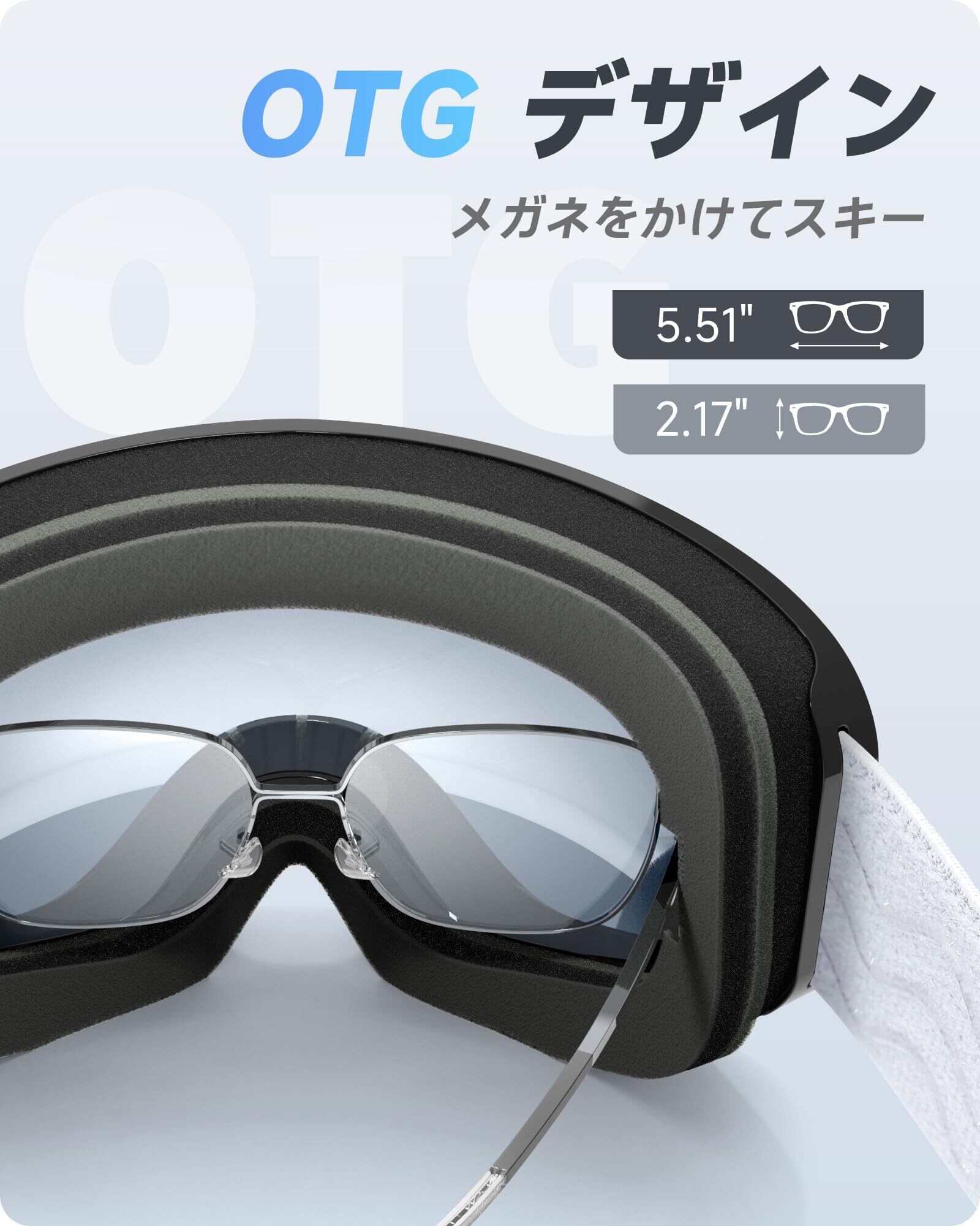 【OTG (メガネ対応) デザイン】RIOROOスキーゴーグルはOTGデザインが特徴で、大小のフレームメガネにフィットします。スキーゴーグルの下に度付きメガネを着用すると、近視でも路面がはっきりと見え、雪景色を楽しむことができ、スキーの楽しさと安全性が高まります。スキー、スケート、アルペンスキーに適しています。
