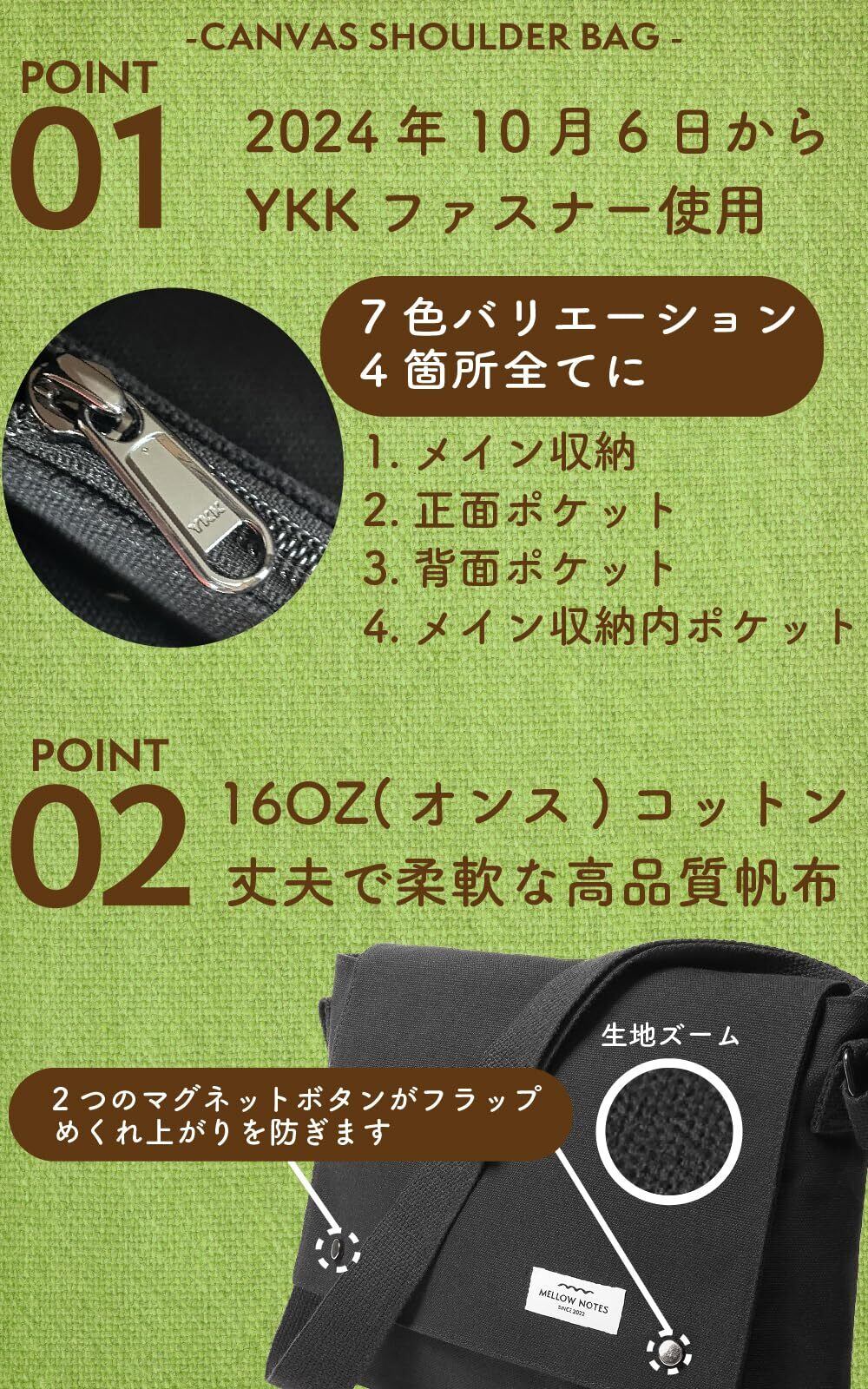 [MELLOW NOTES] [メローノーツ] ショルダーバッグ メンズ ショルダー バッグ 肩掛け メッセンジャーバッグ YKK 斜めがけ 帆布 キャンバス a4 シンプル カジュアル 人気