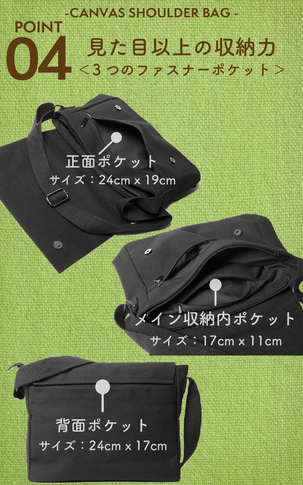 【見た目以上の収納】タブレット・13インチPC・A4書類・500mlペットボトル他、収納可能。(PC用の保護パッドはございません)マチが10cmなので、ラフに色々入るショルダーバッグ。メンズに限らず、女性にも使い易い肩掛けバッグです