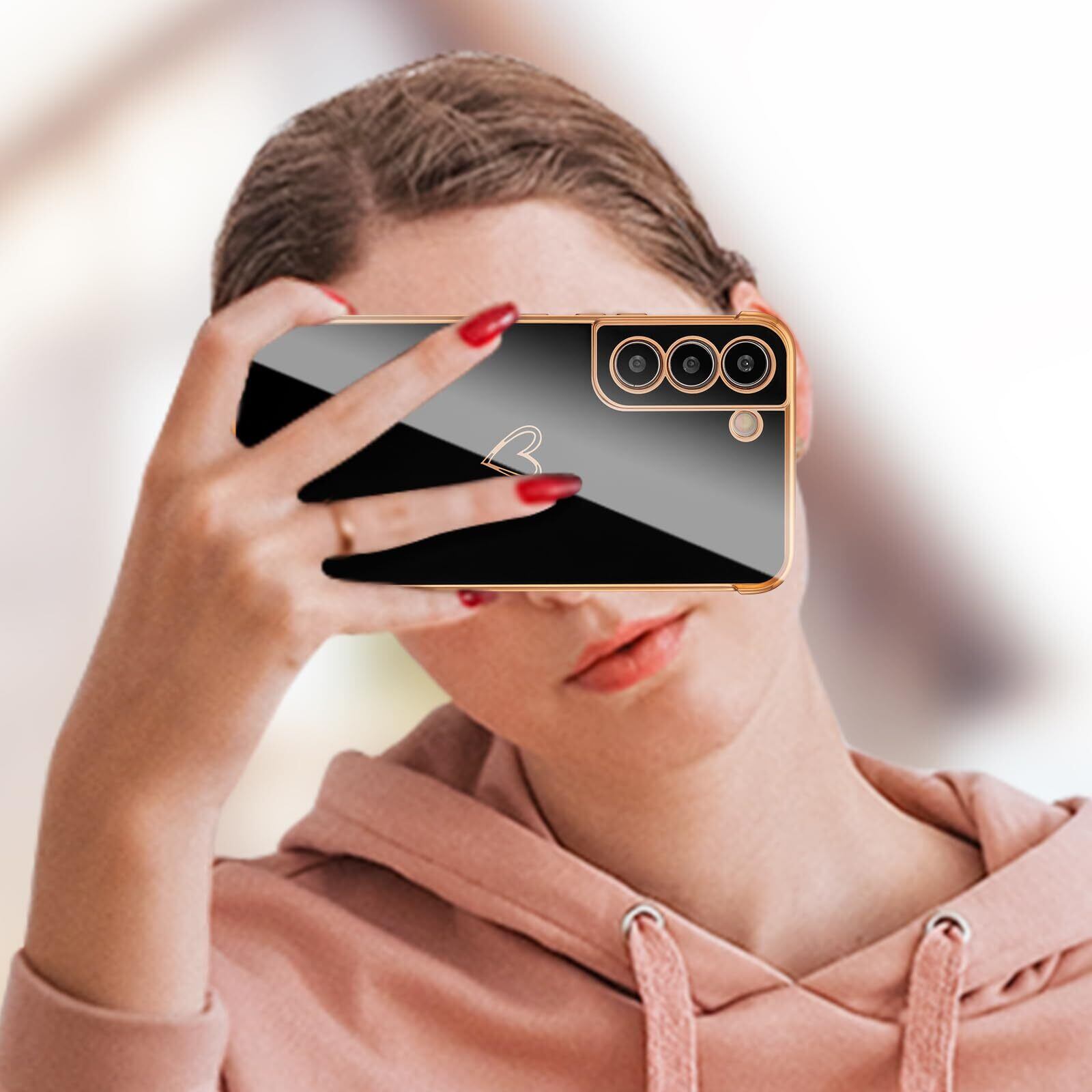 ZTOFERA Samsung Galaxy S21 用 ハートケース 柔軟な TPU シリコン メッキ加工 ソフト 軽量 耐衝撃 おしゃれ 韓国 可愛い サムスン ギャラクシー S21 ケース 携帯カバー 女性 心パターン スマホケース ワイヤレス充電対応 (ブラック)