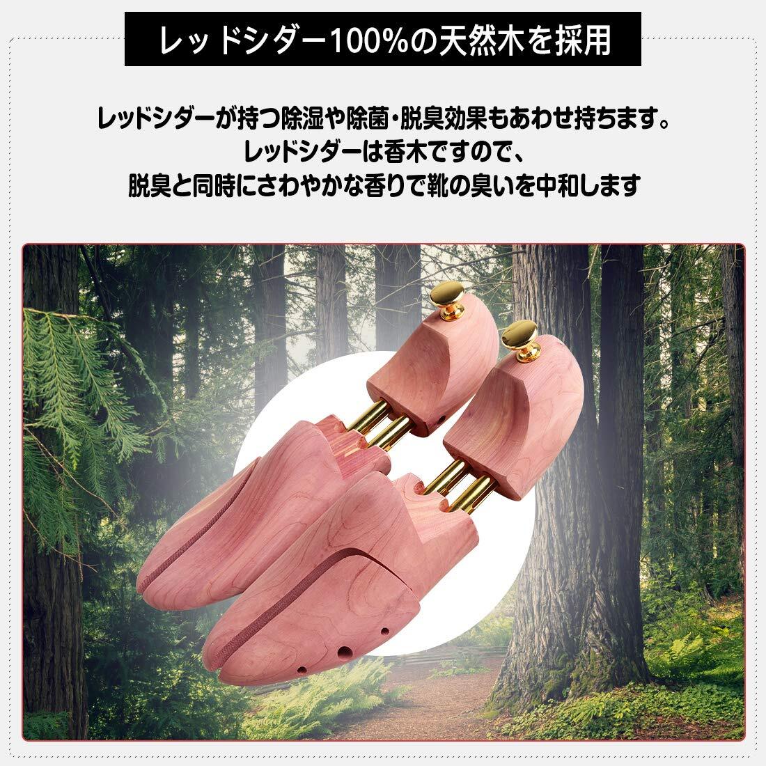 付属品がついていない場合、また付属品にご満足を頂けなかったら、メールにてご連絡ください、付属品を再発送いたしますので、ご安心ください。【天然のレッドシダー素材を使用】シューキーパーにはプラスチック製と木製がありますが、Matunokiの木製シューキーパーはレッドシダーを使い、甲高に仕上げました、形状矯正はもちろん吸湿性・耐久性に優れ、靴のシワを伸ばし、型崩れを防ぎます。レッドシダーは独特のさわやかな香りが特徴です。天然の成分により、腐朽や虫害に強く、すぐれた耐久性と寸法安定性を発揮します。