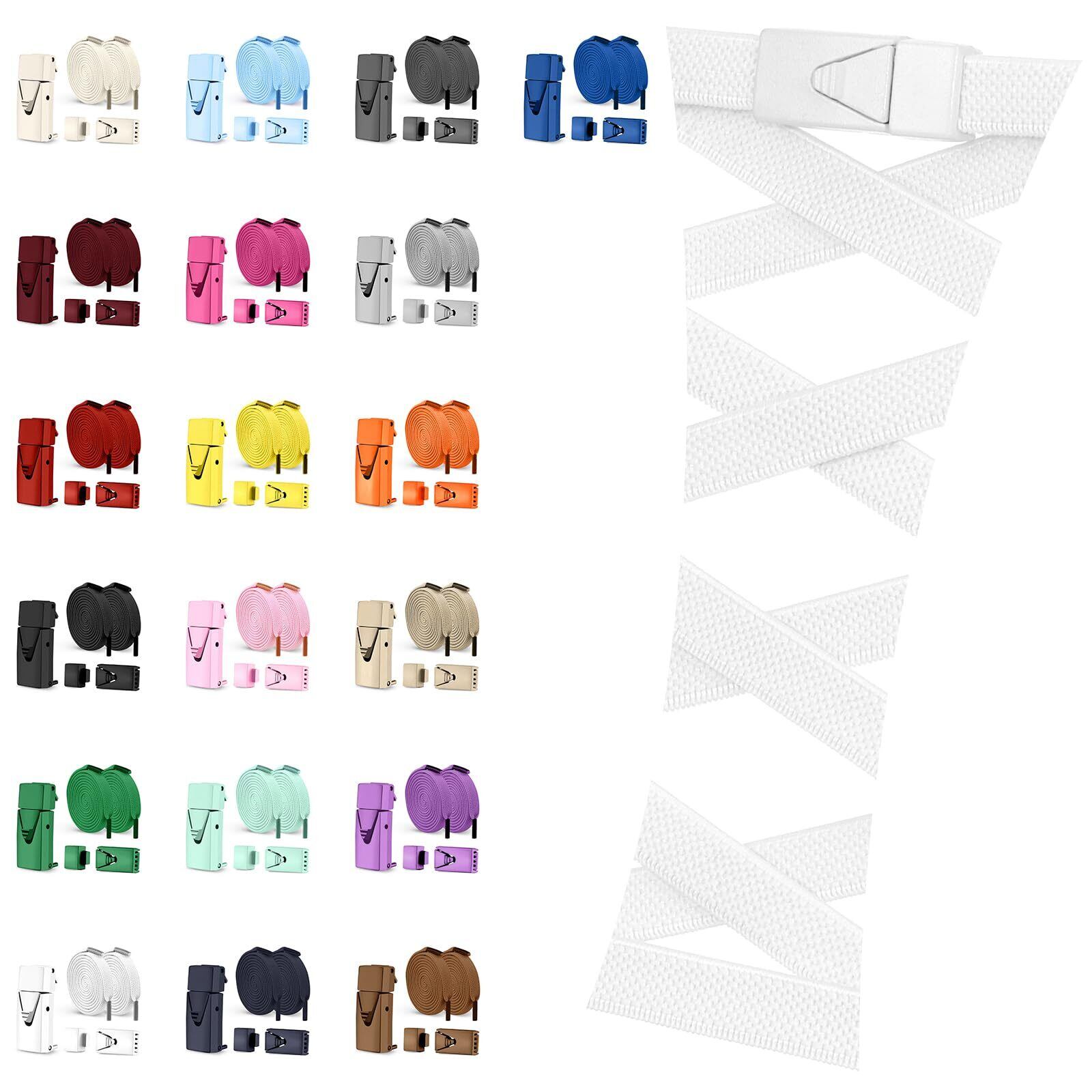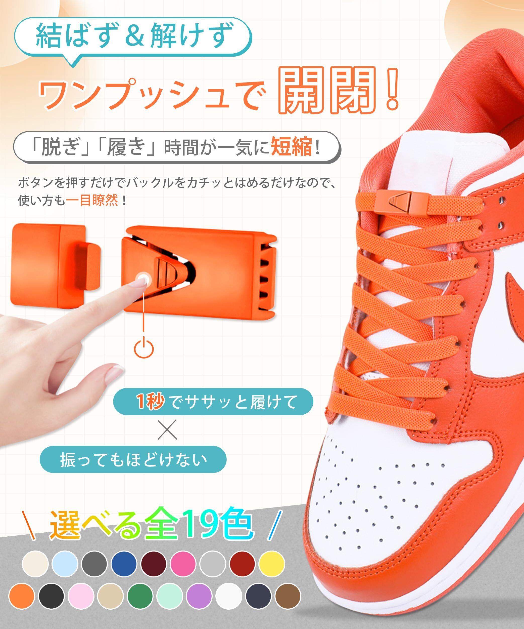 [MECOLO] 靴紐 結ばない シューレース 靴ひも 【2025強化版·結ばず&解けず·ワンプッシュで開閉】 ほどけない くつひも 簡単取り付け 平紐 留め具 ゴム紐 伸びる靴紐 8mm スニーカー 紐 子供 高齢者 無地 19色 1足/2足組